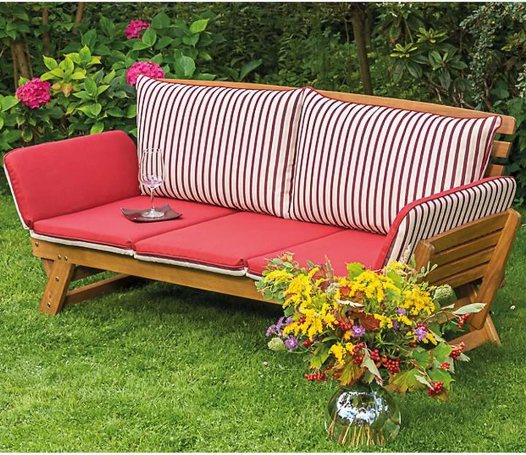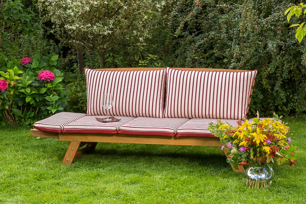 Merxx Gartenbank Mit Sitzkissen Akazie Natur, Rot, Creme 63 Cm X 202 Cm X 77 Cm