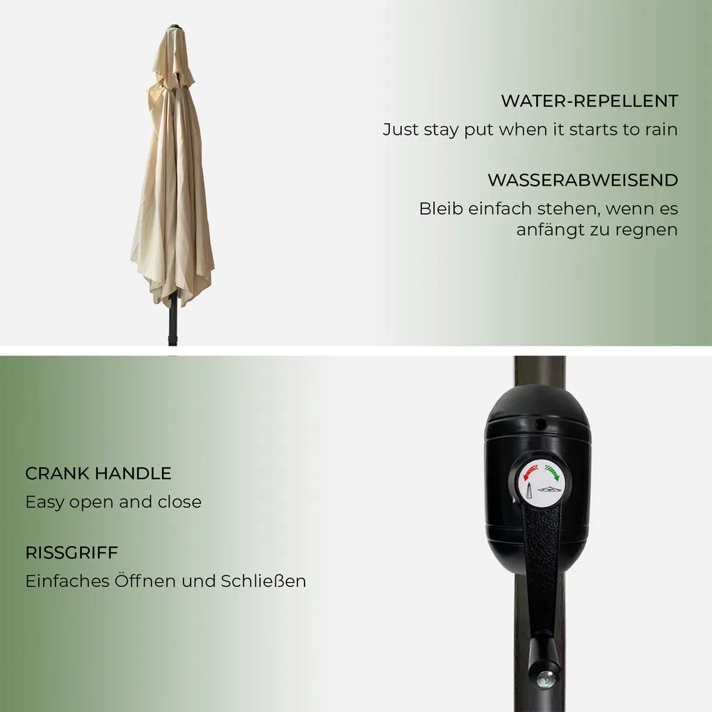 MIADOMODO® Sonnenschirm – 300 Cm, Mit Kurbel, Höhenverstellbar, UV-Schutz, Farbwahl – Gartenschirm, Terrassenschirm, Balkonschirm