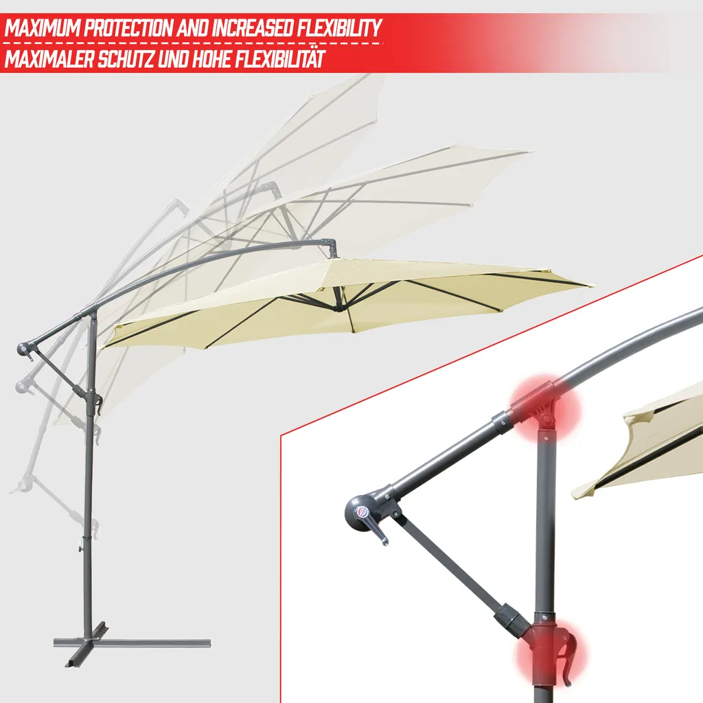 MIADOMODO® Sonnenschirm – Ø300/350cm, Mit Ständer, Handkurbel, Neigbar, Verstellbar, Farbwahl – Ampelschirm, Gartenschirm, Marktschirm, Terassenschirm