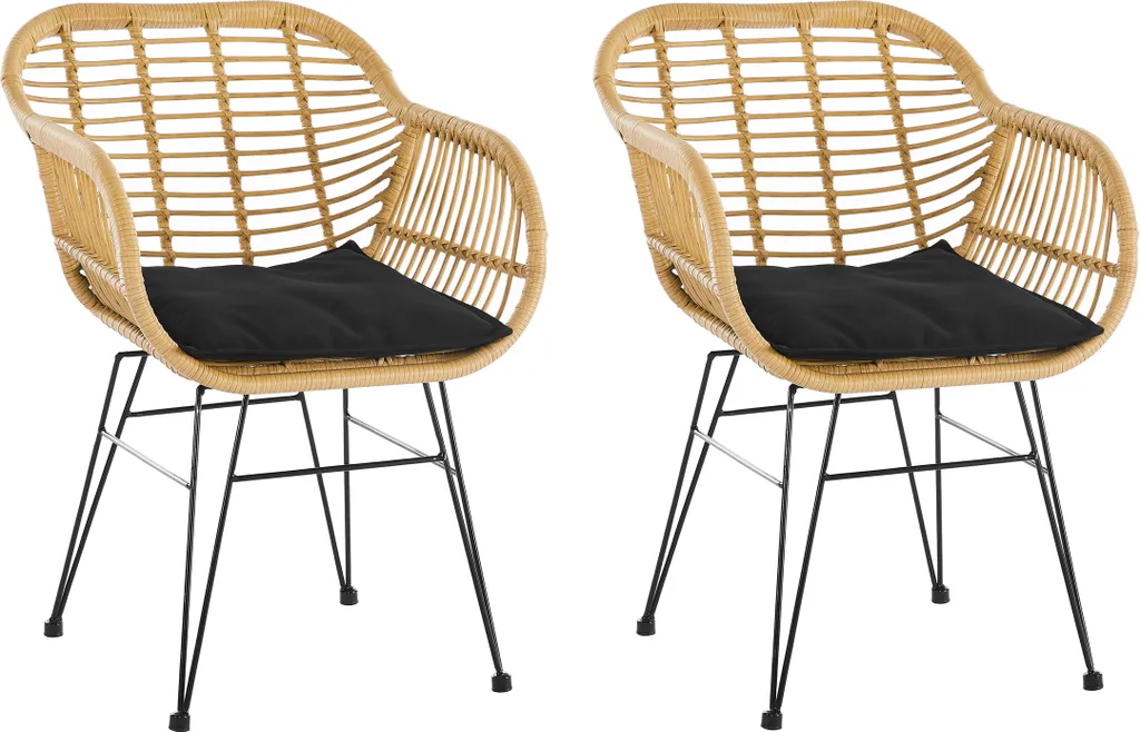 Möbilia Gartensessel 2er-Set Aus Polyrattan |inklusive Sitzkissen | B 58 X T 59 X H 80 Cm | Natur-schwarz | 10020007 | Serie GARTEN