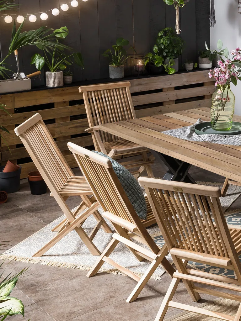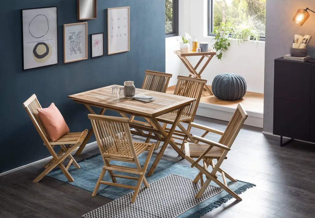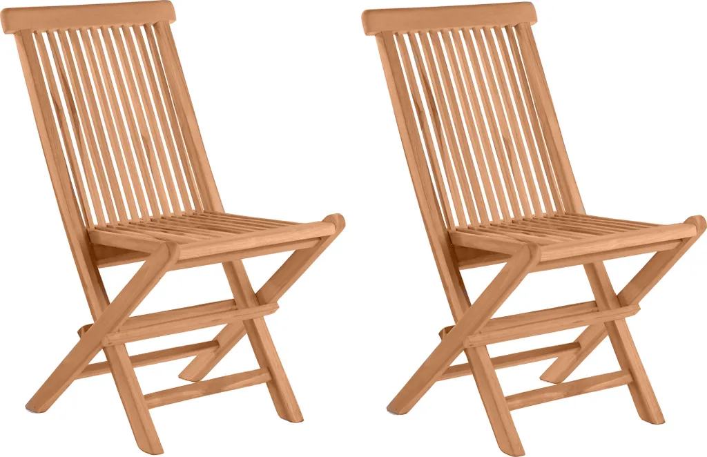 Möbilia Gartenstuhl 2er-Set Aus Teak Holz | Klappbar | B 47 X T 57 X H 89 Cm | Natur | 11020003 | Serie GARTEN
