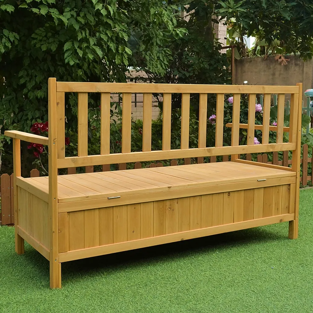 Mucola Holz Truhenbank Sitzbank Gartenbank Küchenbank Holz Auflagenbox Gartentruhe NEU