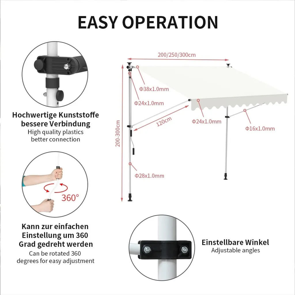 Mucola Klemmmarkise 250-120cm Creme Balkon Markise Sonnenschutz Terasse Fenstermarkise Balkonmarkise Sonnensegel Windschutz Rollo