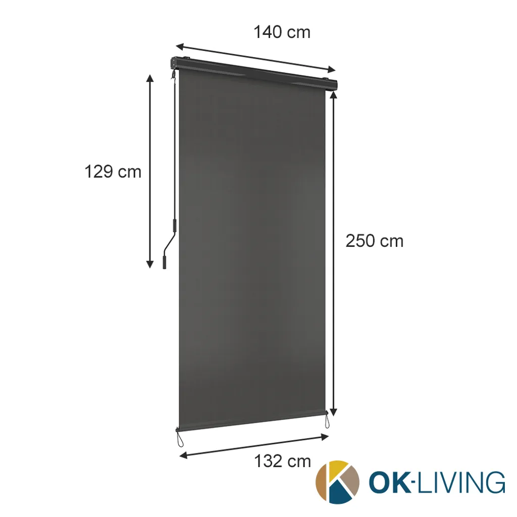 OK-Living Senkrechtmarkise Sonnenschutzrollo Seitenmarkise Anthrazit 250×140 Cm