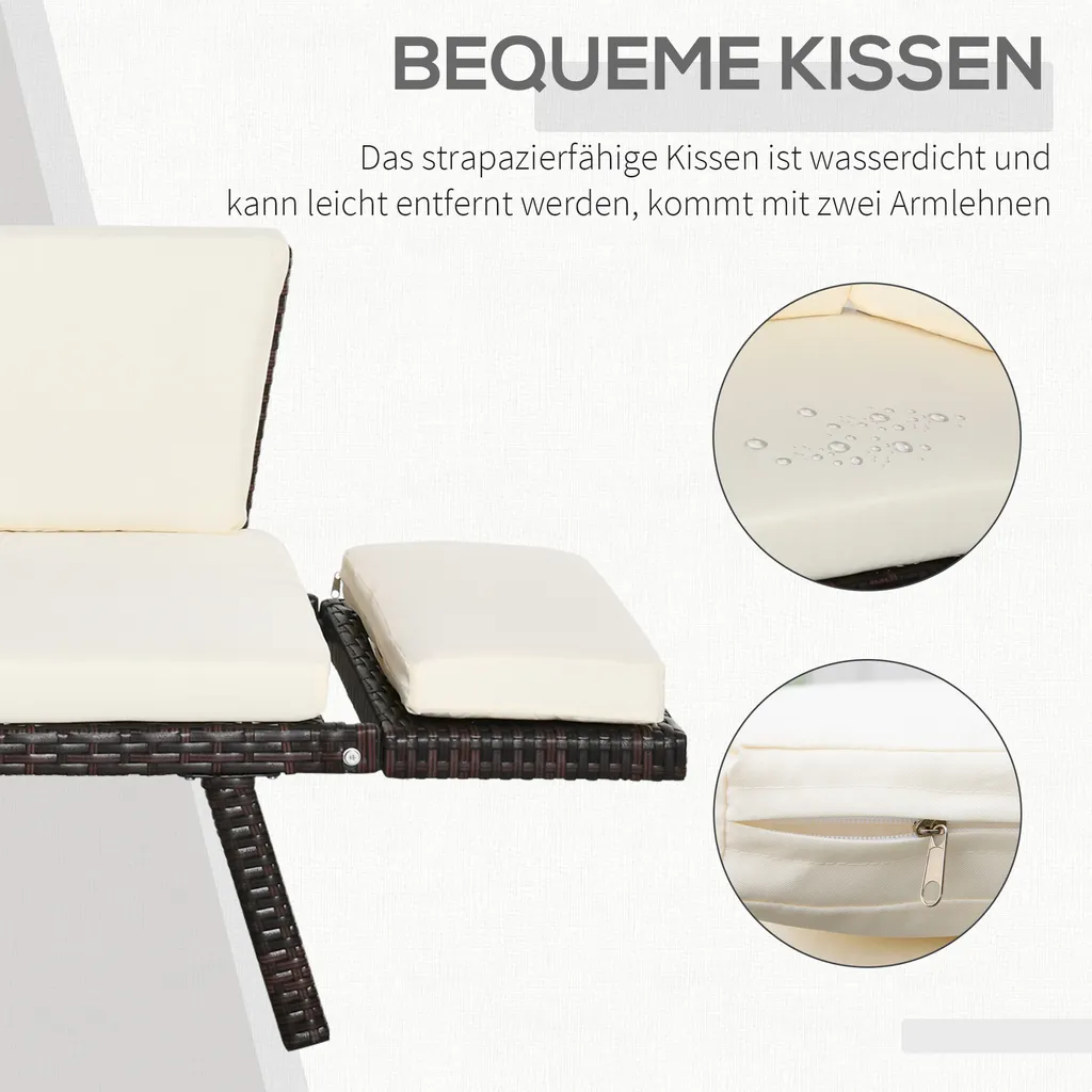 Outsunny 2er Gartensofa Gartenmöbel Loungesofa Gartenbank Gartenliege Klappbare Armlehnen Polyrattan + Stahl Braun 129 X 66 X 79 Cm