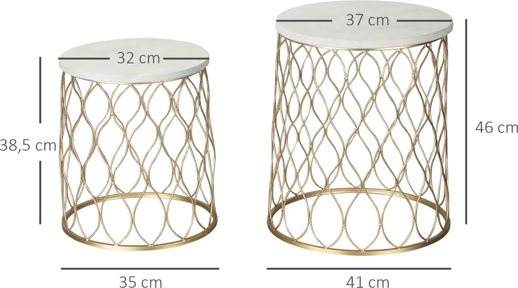 Outsunny 2er-Set Gartentisch Beistelltische Couchtische Retro Drahtkorb Metallkorb Garten Satztisch Gartenmöbel Outdoor Balkon Stahl Gold + Weiß Ø41 X 46 Cm