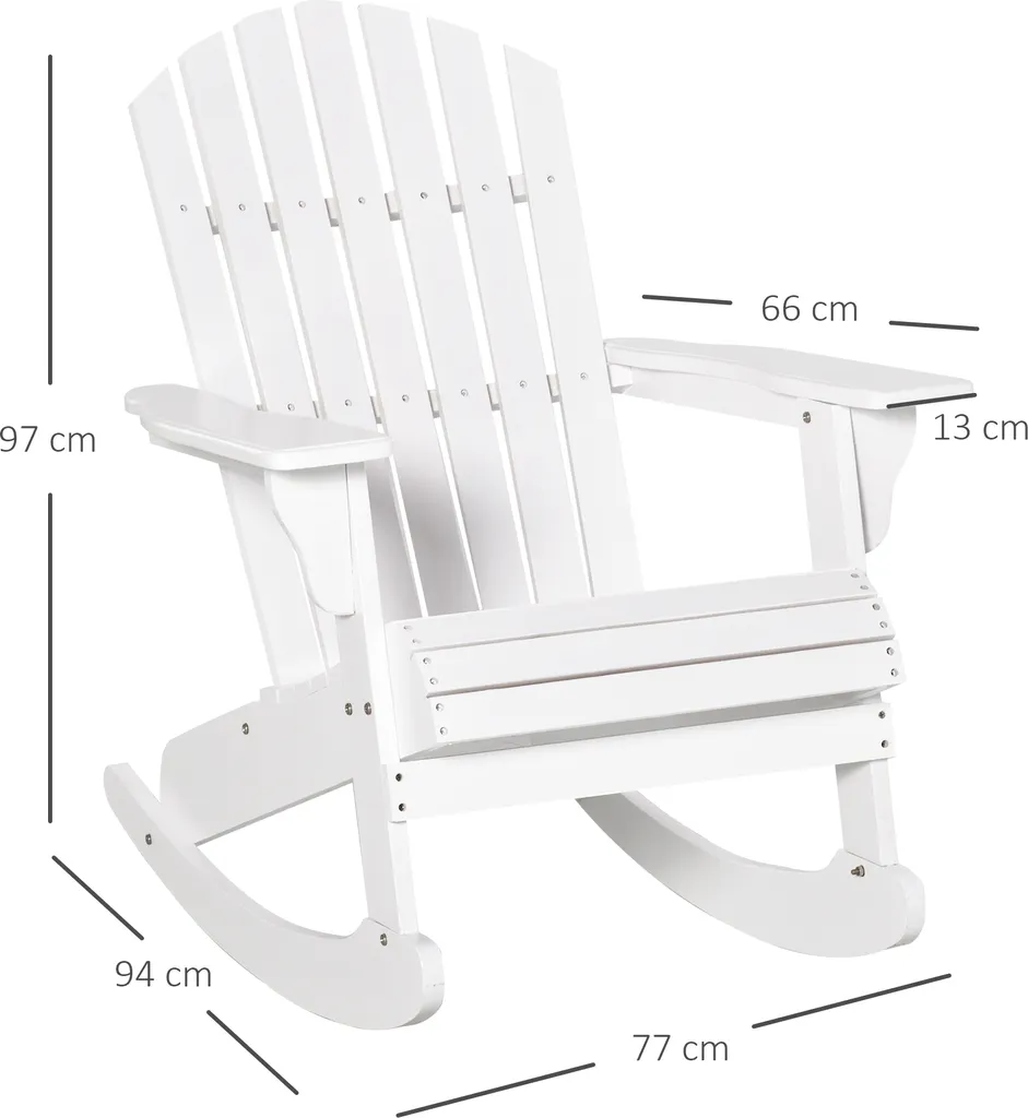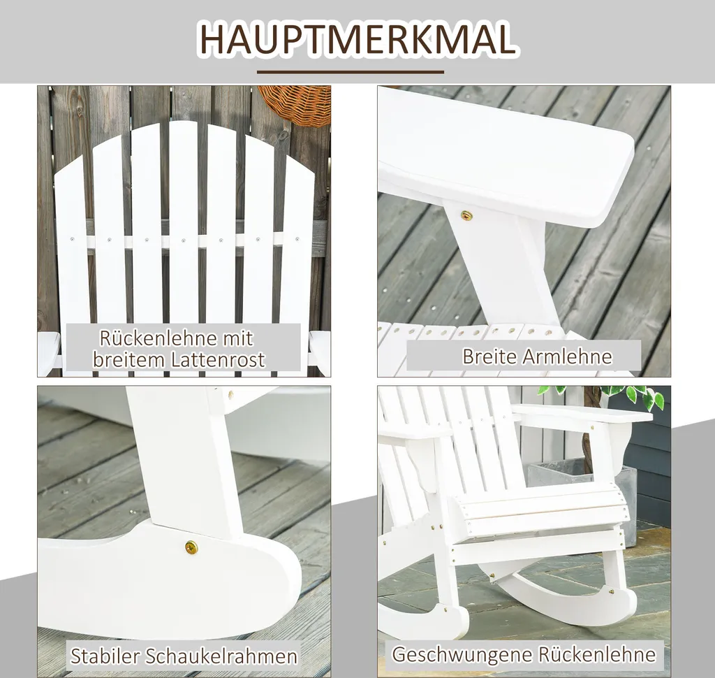 Outsunny Adirondack Gartenstuhl Schaukelstuhl Schaukelsessel Gartensessel Gartenmöbel Balkonstuhl Weiß 77 X 94 X 97 Cm
