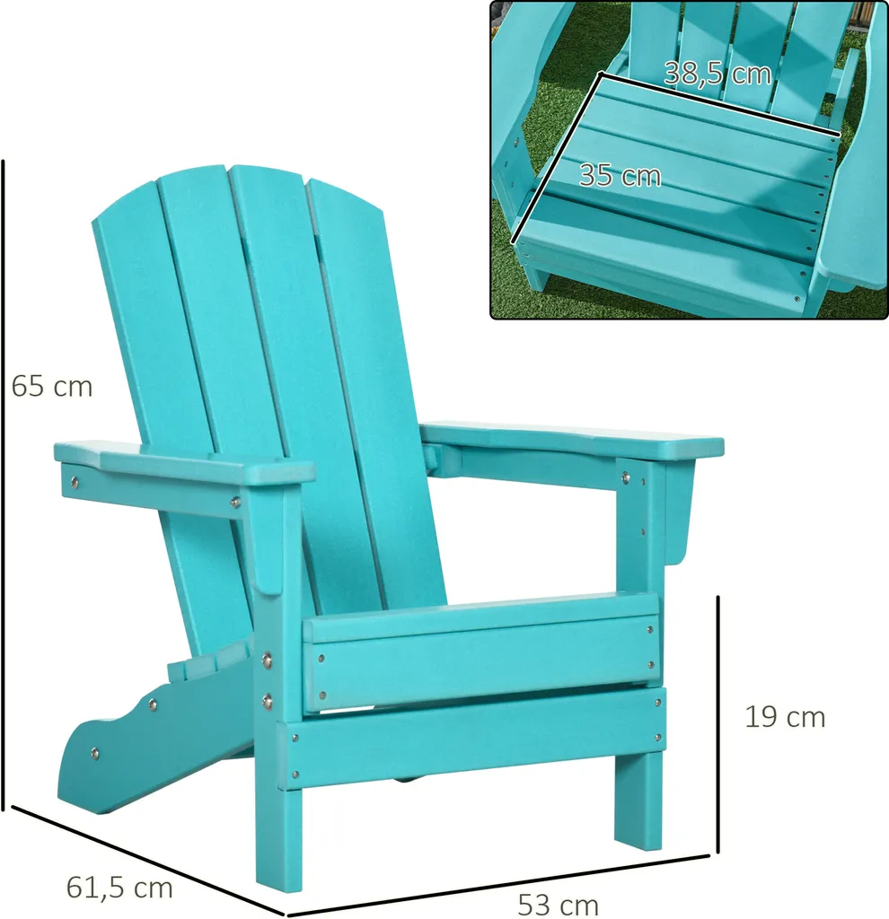 Outsunny Adirondack-Stuhl Kinder, Gartenstuhl Mit Lamellendesign, Kinderstuhl, Outdoor, Balkonstuhl Für Kinder Ab 3 Jahren, Gartenmöbel, HDPE, Blaugrün, 61,5 X 53 X 65 Cm