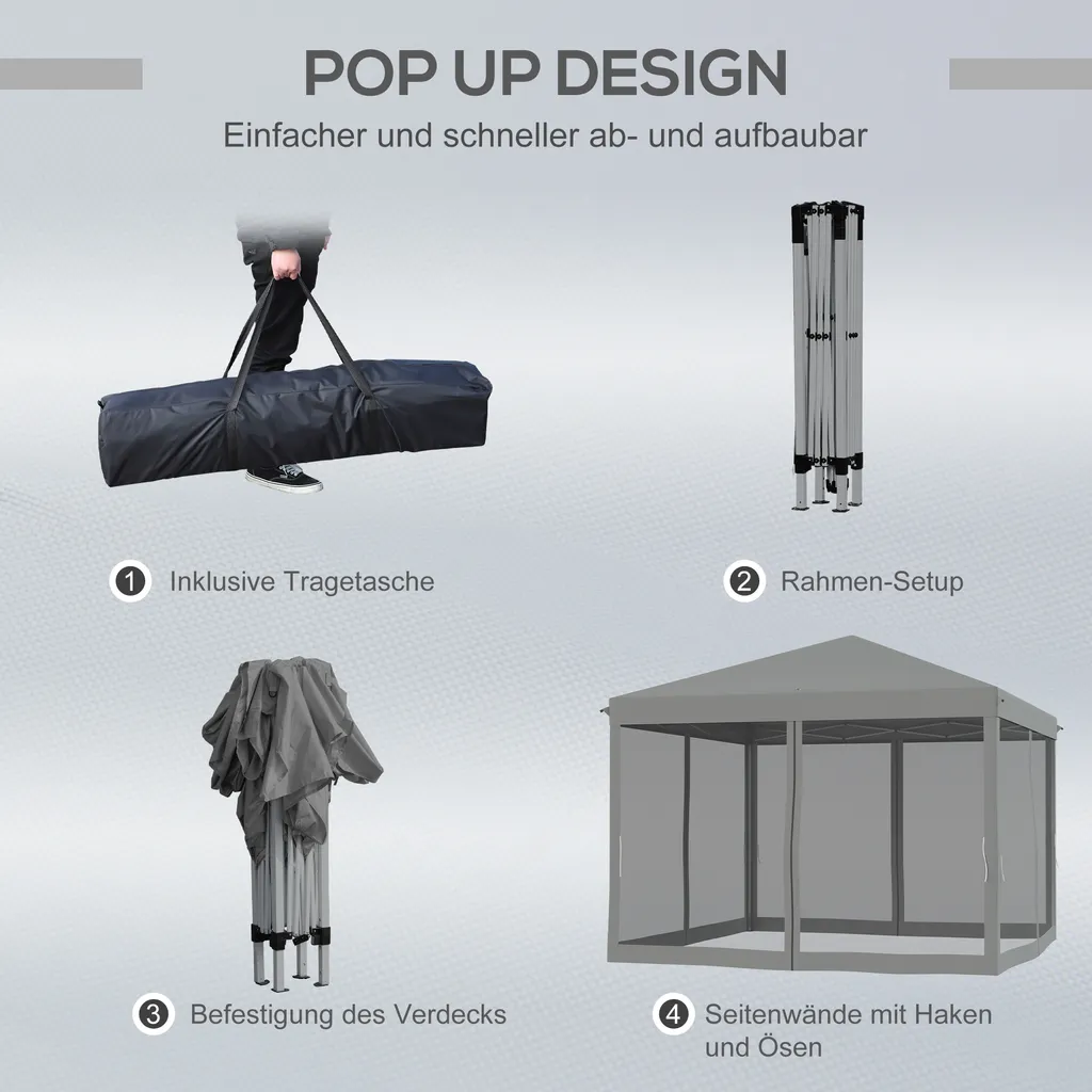 Outsunny Faltpavillon Pavillon Faltzelt Mit Seitenwänden Inkl. Tragetasche Metall+Oxford Hellgrau+Schwarz 3x3m