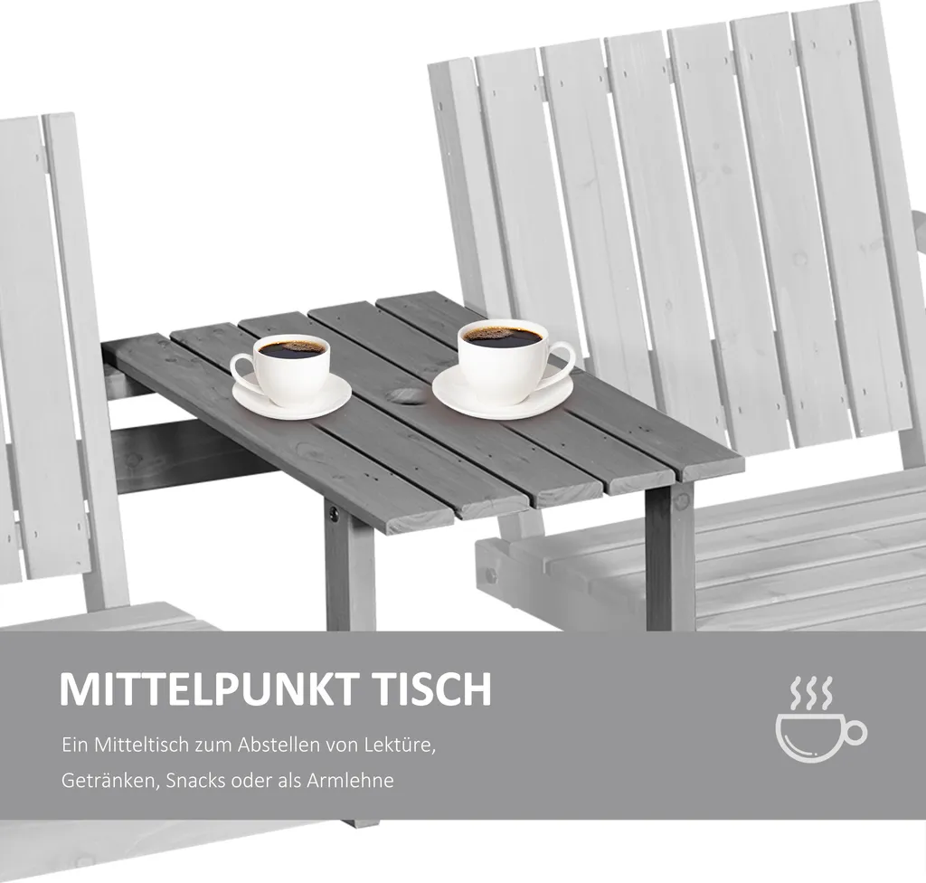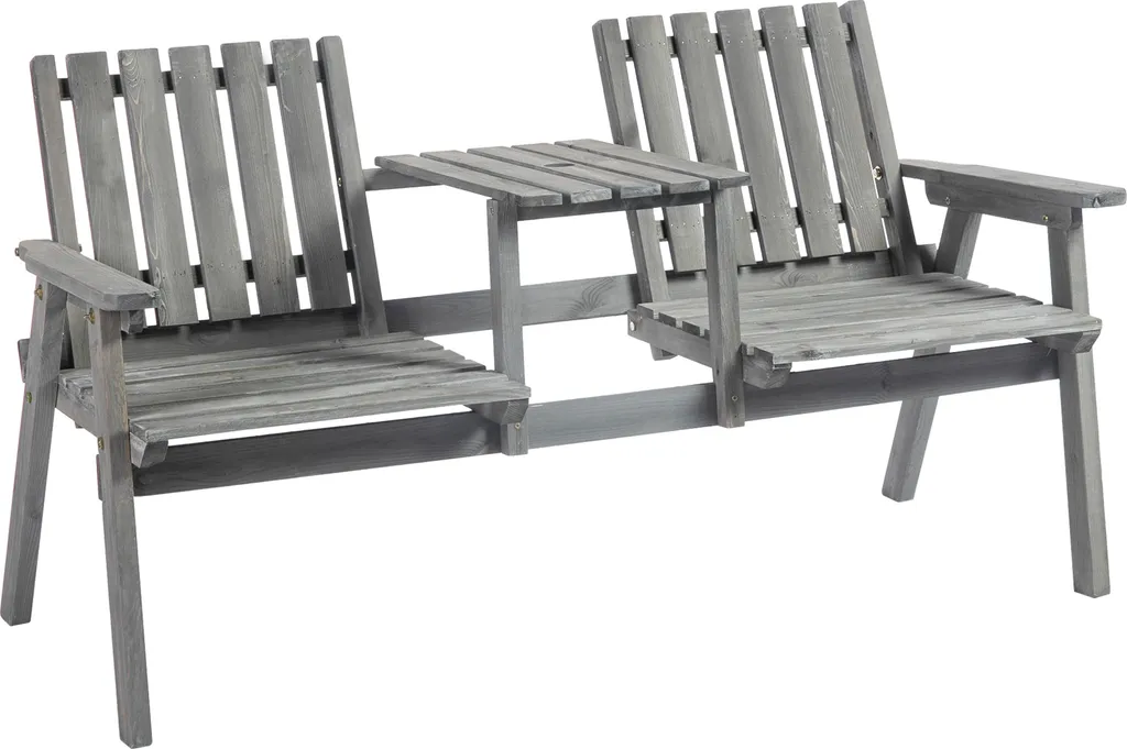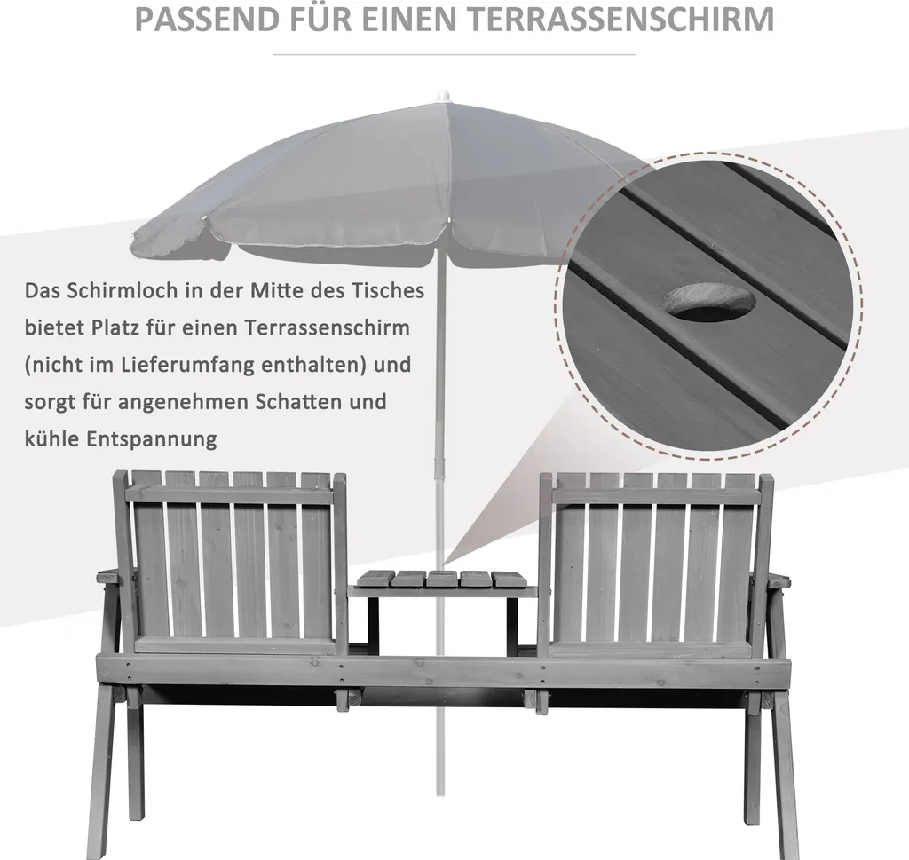 Outsunny Gartenbank Mit Tisch, Sitzgruppe, Gartenmöbel, Mit Regenschirmloch, Sitzbank, 2 Stühle, Massivholz, Grau, 152 X 70 X 83 Cm