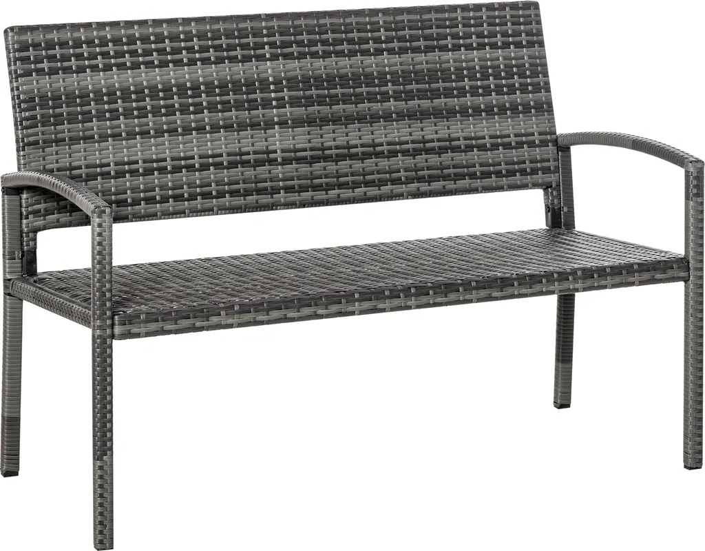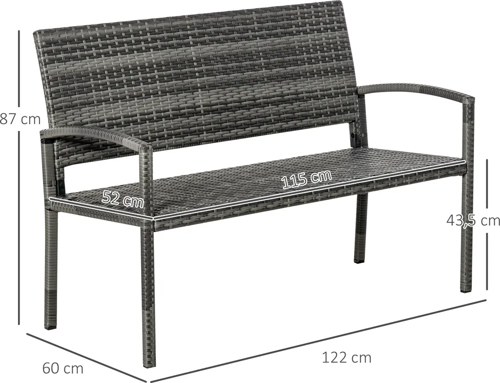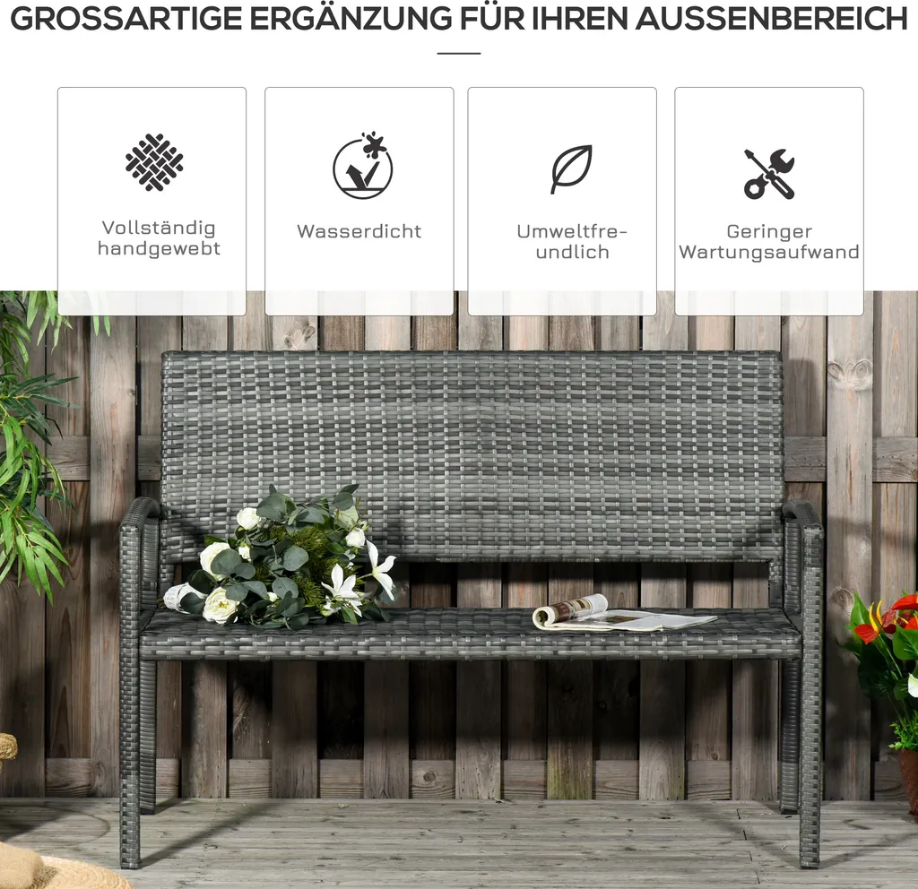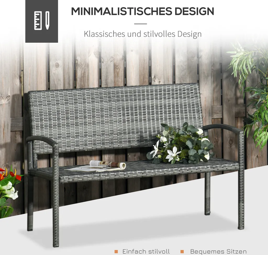 Outsunny Gartenbank, Sitzbank In Rattanoptik, Parkbank Mit Stahlrahmen, Balkonbank Für 2 Personen, Gartenmöbel, Bis 320 Kg Belastbar, Grau, 122 X 60 X 87cm