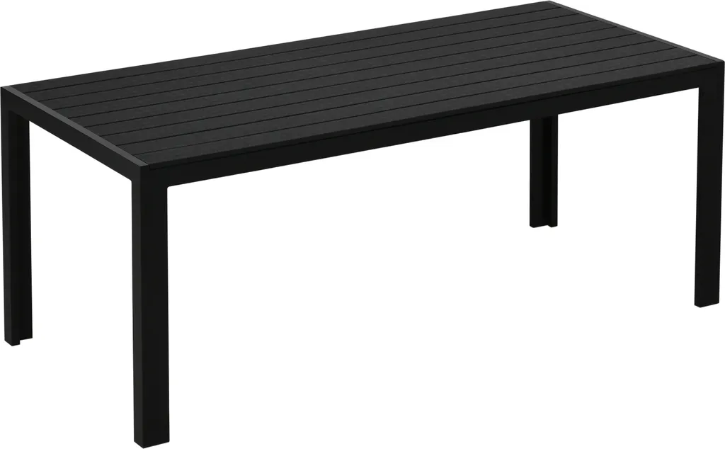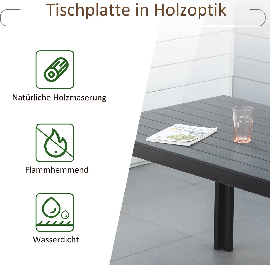 Outsunny Gartentisch Aluminium Tisch Garten Terrasse Holz-Kunststoff WPC Non-Wood Schwarz Mit Horizontale/vertikale Sitzlatten