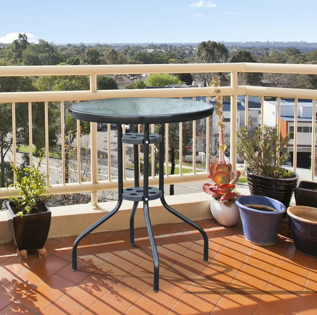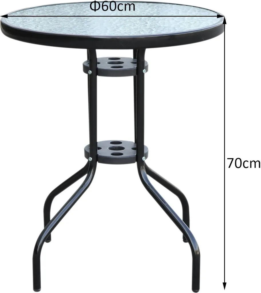 Outsunny Gartentisch Balkontisch Bistrotisch Glastisch Beistelltisch Metall+Sicherheitsglas ∅60xH70cm