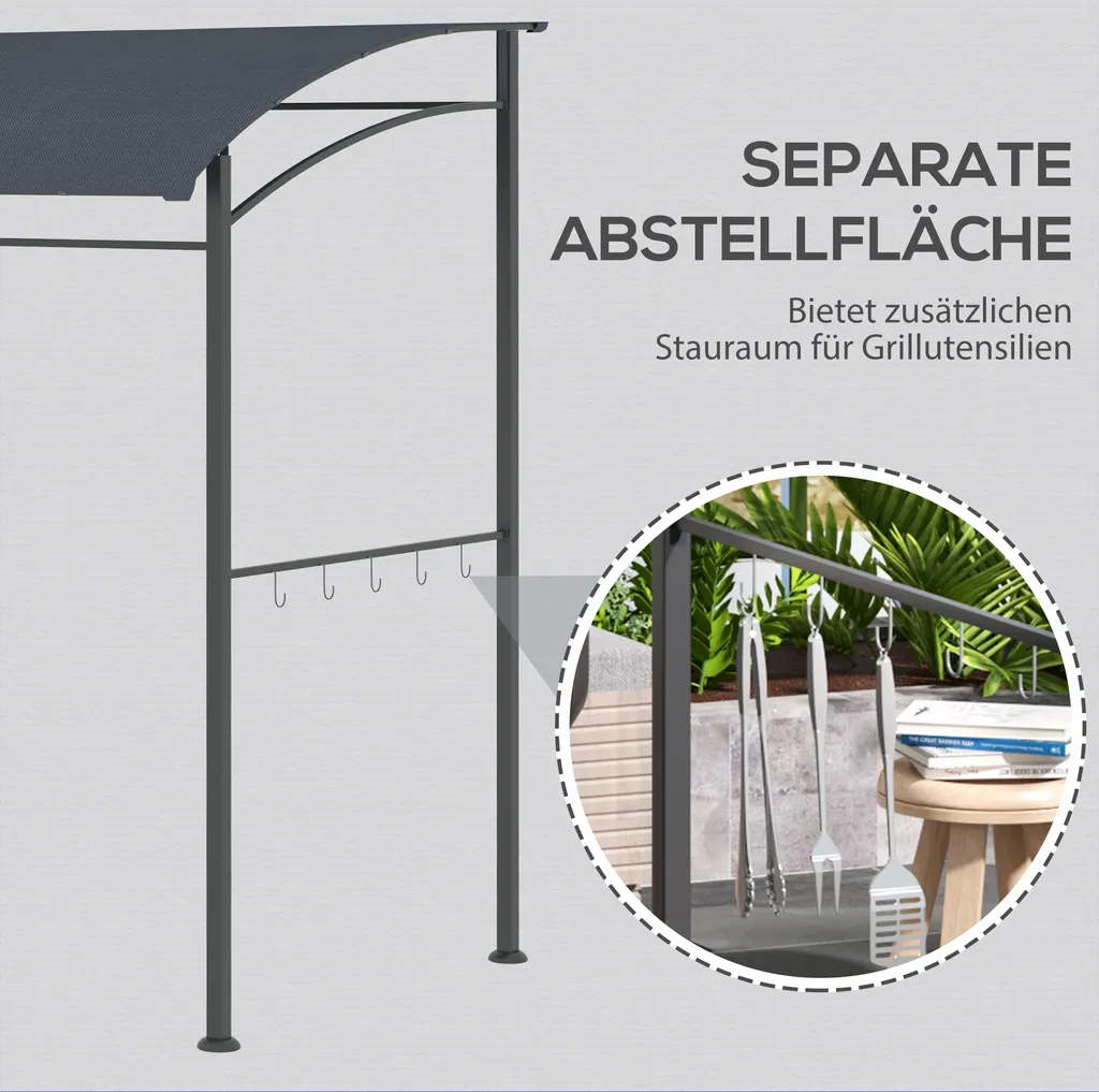 Outsunny Grillpavillon, Grillüberdachung, Regenschutz, UV-beständig, Wasserdicht, Mit Haken, Stahlrahmen, Polyester, Grau, 215 X 150 X 174/220 Cm
