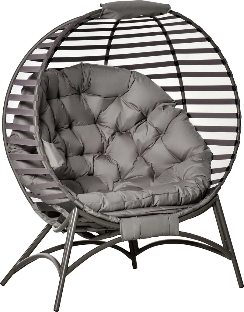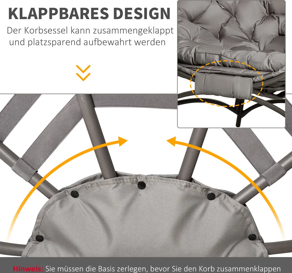 Outsunny Papasansessel Gartenstuhl 2 Sitzer Korb-Stuhl Mit Kissen Oval Loungesessel Korb Faltbar Balkon Terrasse Outdoor/Indoor Sandbraun Stahl 118 X 75 X 139 Cm
