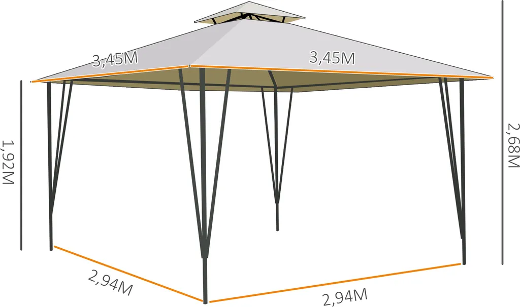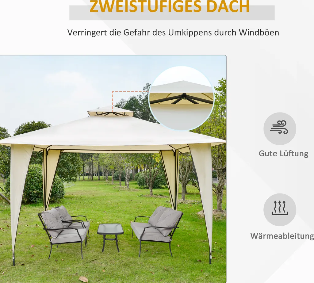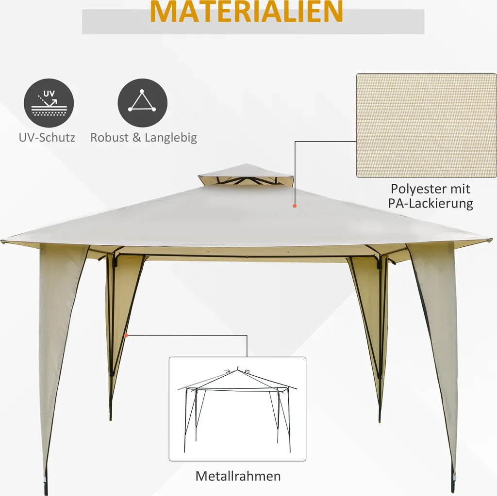 Outsunny Pavillon Partyzelt Mit Doppeldach 3,45×3,45×2,68m Festzelt Gartenlaube Stahl Polyester Beige