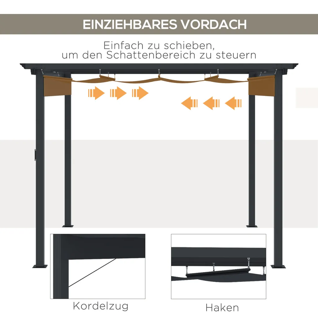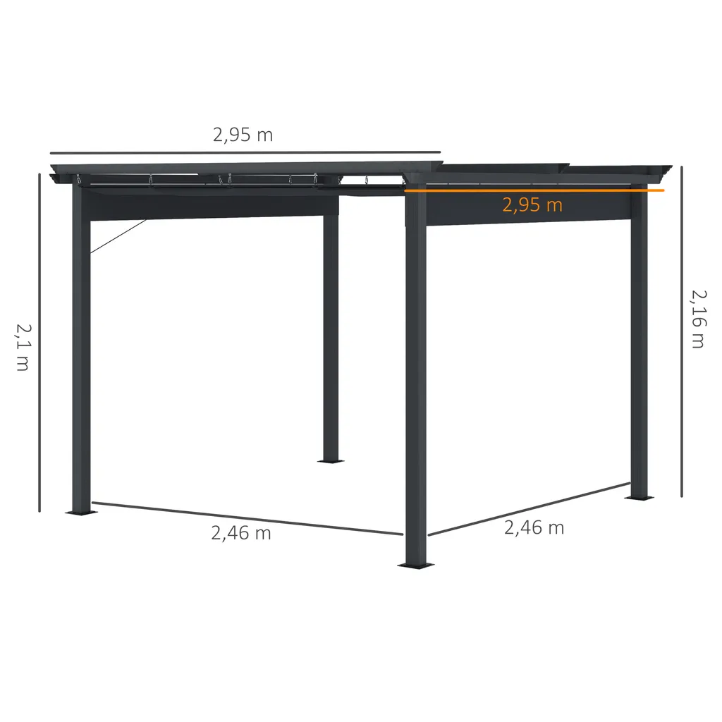 Outsunny Pergola 2,95 X 2,95 M Pavillon Terrassenüberdachung Mit Schiebedach Aluminium Polyester Grau