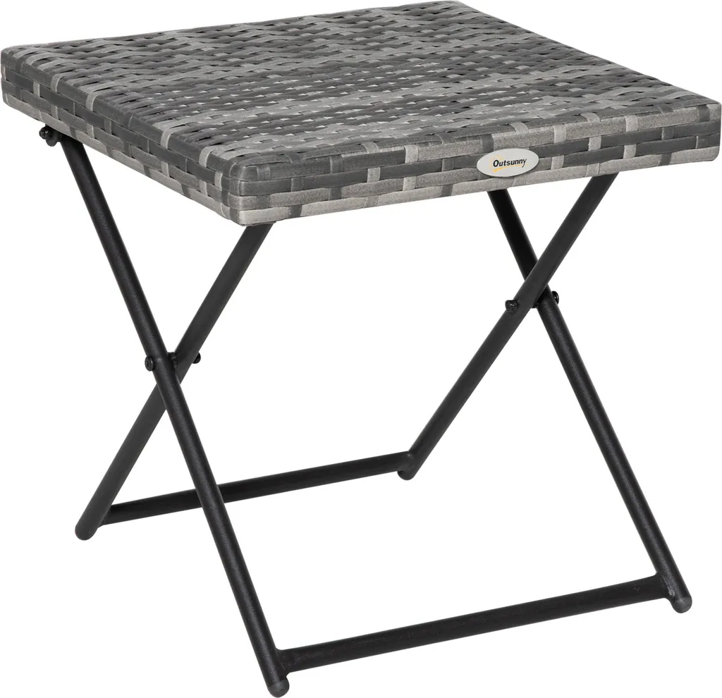 Outsunny Polyrattan Beistelltisch Gartentisch Klappbar Couchtisch Gartenmöbel Falttisch Metall Grau 40 X 40 X 40 Cm