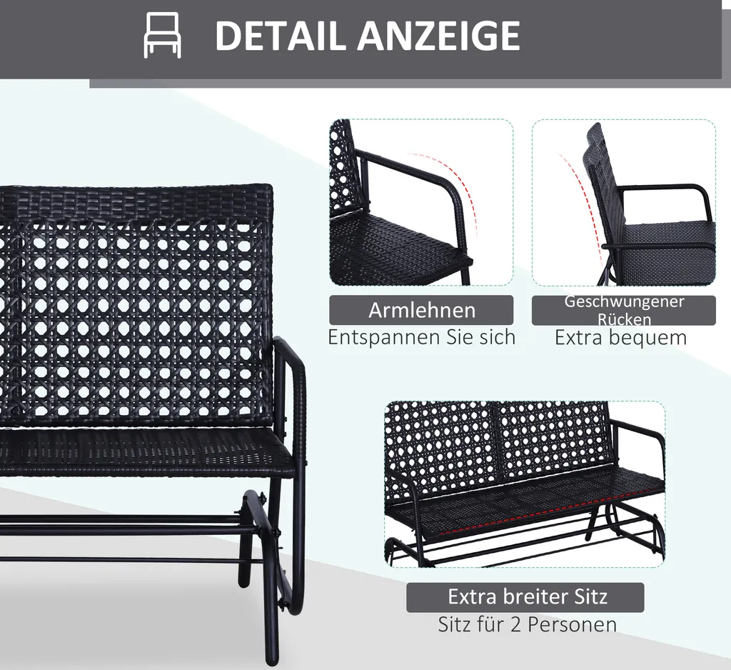 Outsunny Schaukelbank Gartenschaukel Gartenbank Sitzbank Schaukel 2-Sitzer Polyrattan