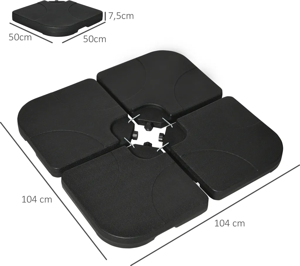 Outsunny Schirmgewicht 4er-Set, Ampelschirmständer Mit 60 Liter Wasser/ 78 Kg Sand Befüllbar, Marktschirmständer, Schirmständer Für Ampelschirm, Schwarz