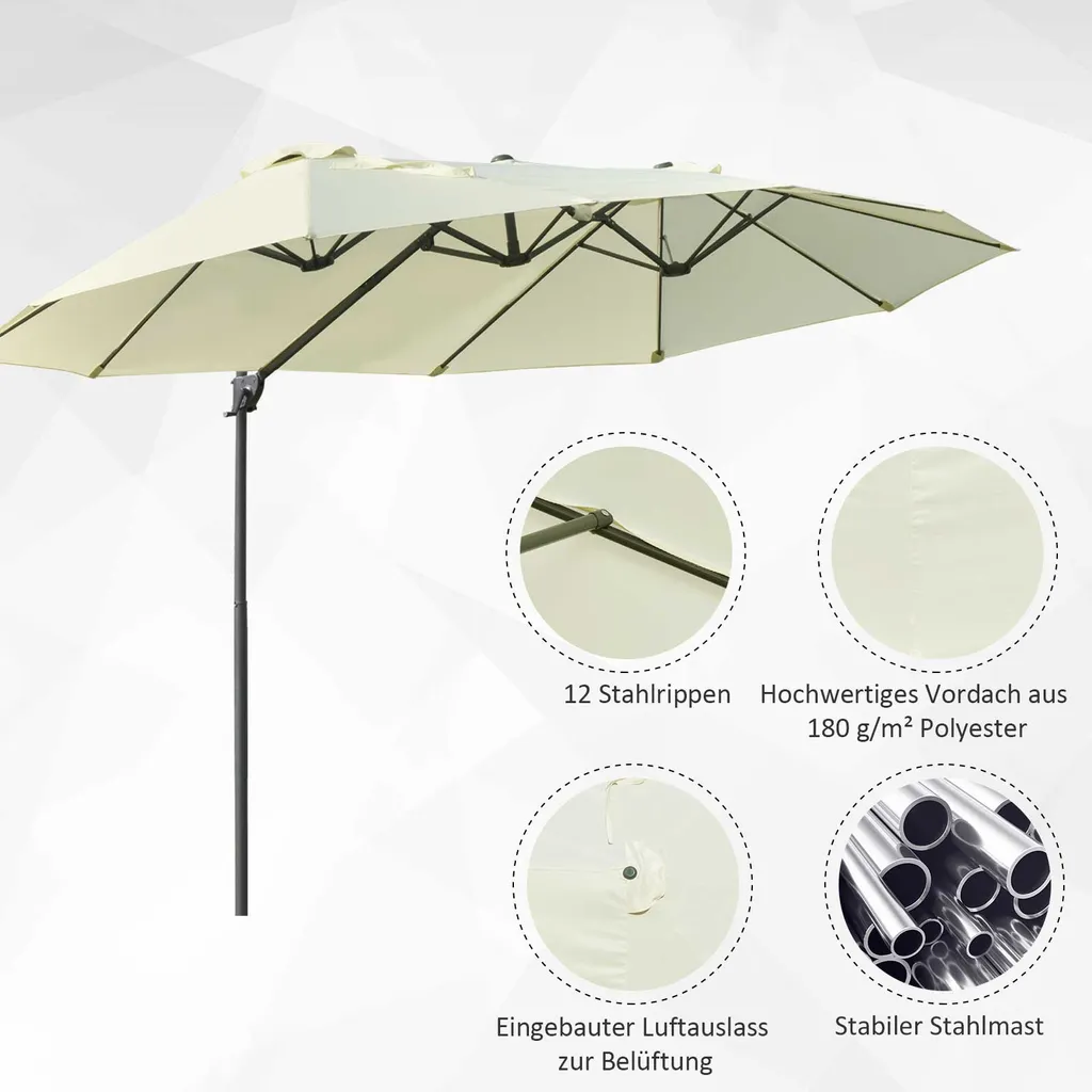 Outsunny Sonnenschirm Ampelschirm Doppelschirm Mit Kurbel Verstellbarer Gartenschirm Sonnenschutz Metall Cremeweiß 440 X 270 X 250 Cm