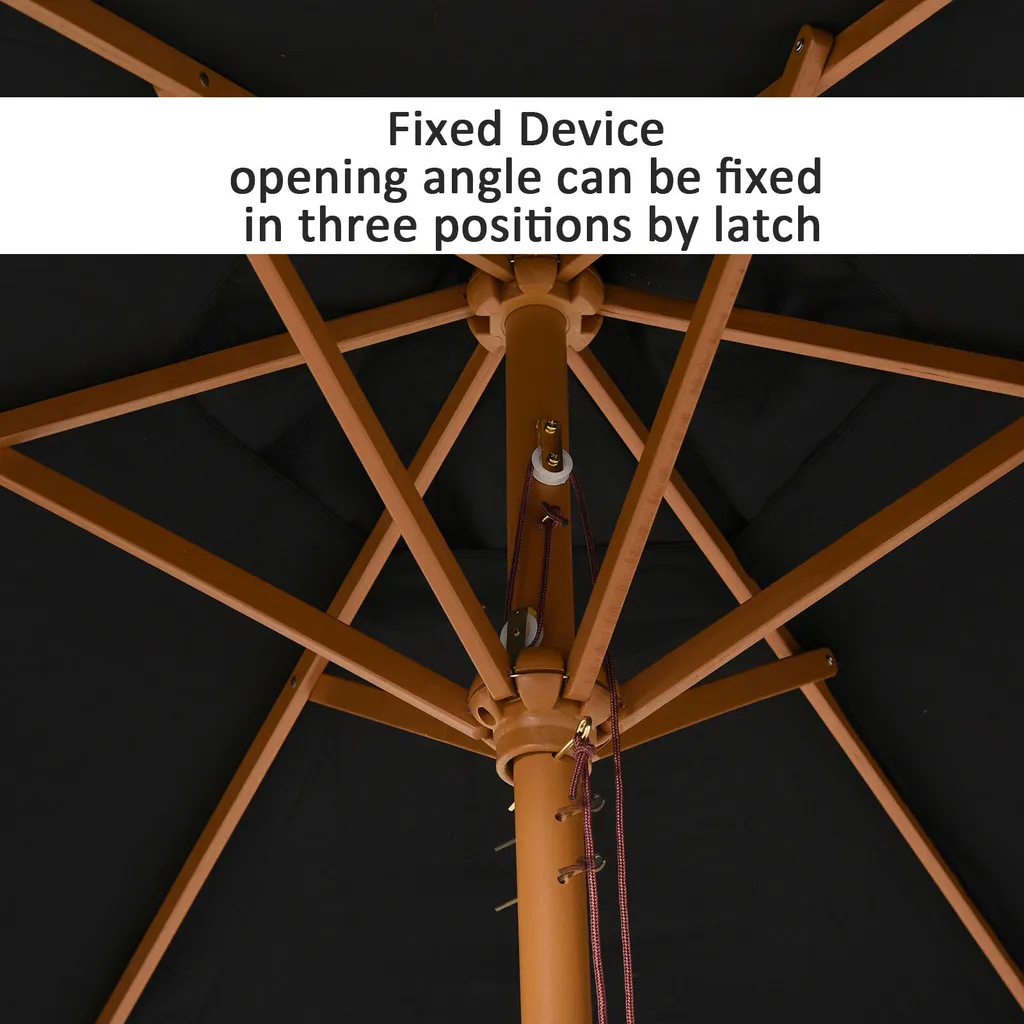 Outsunny Sonnenschirm, Gartenschirm, 3-stufig, Sonnenschutz, Bambus 180/㎡ Polyester, Schwarz, Ø2,5 X 2,3 M