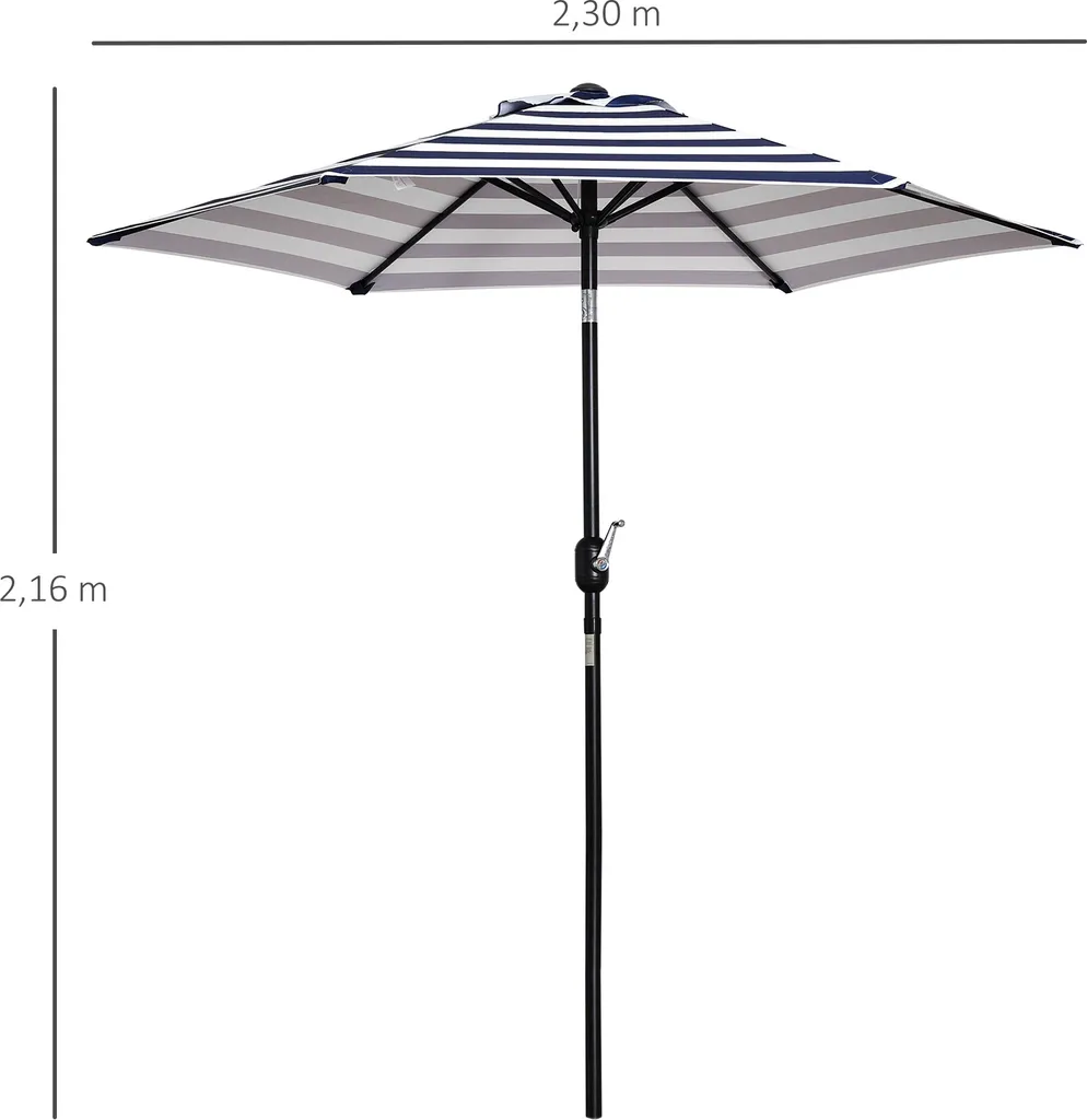 Outsunny Sonnenschirm Gartenschirm Terrassenschirm Gestell Stahl Im Freien Blauer Streifen Ø227 X 225 Cm