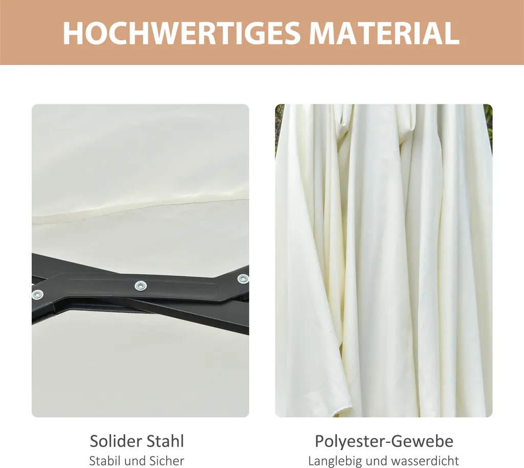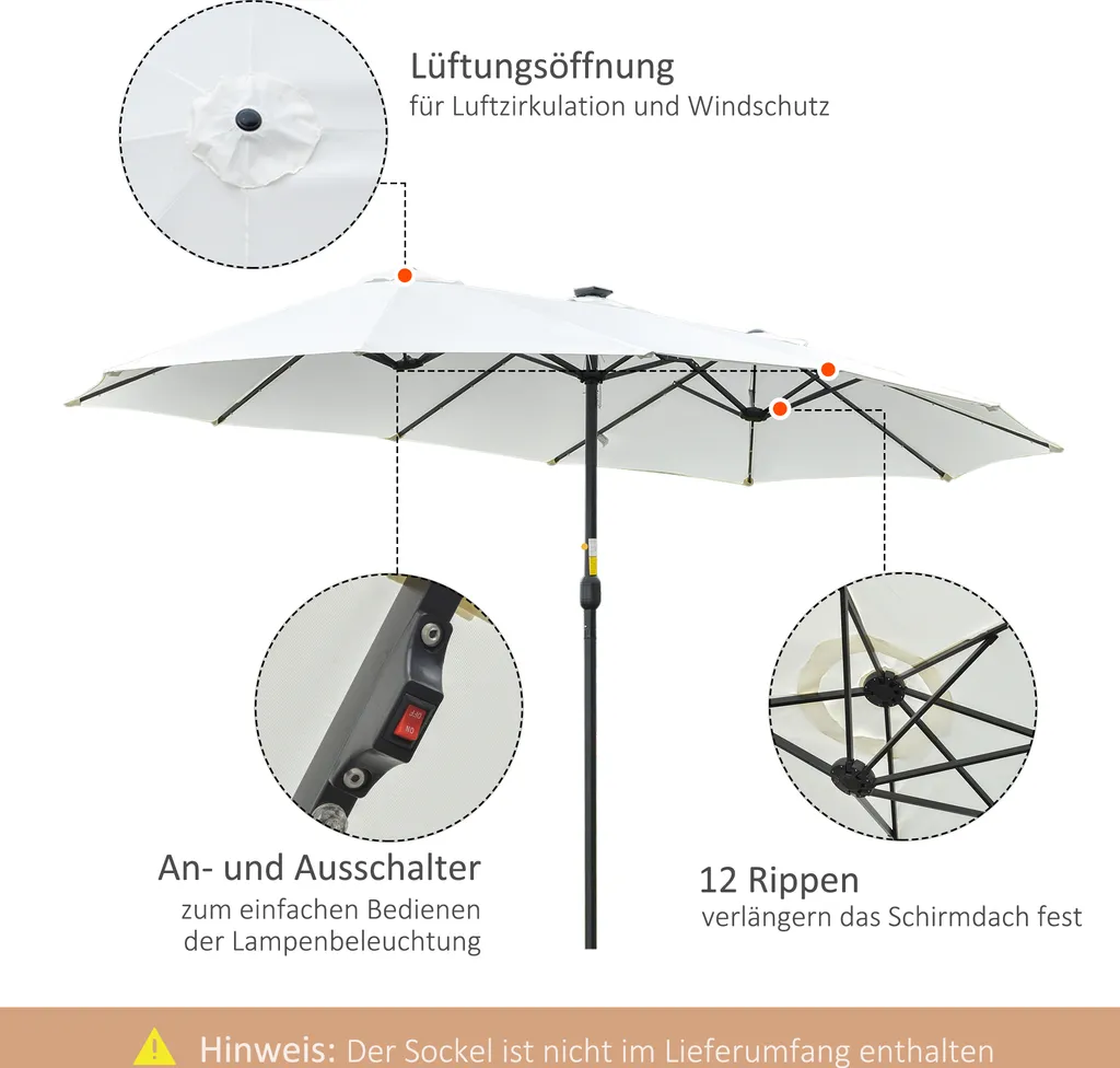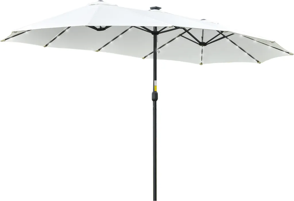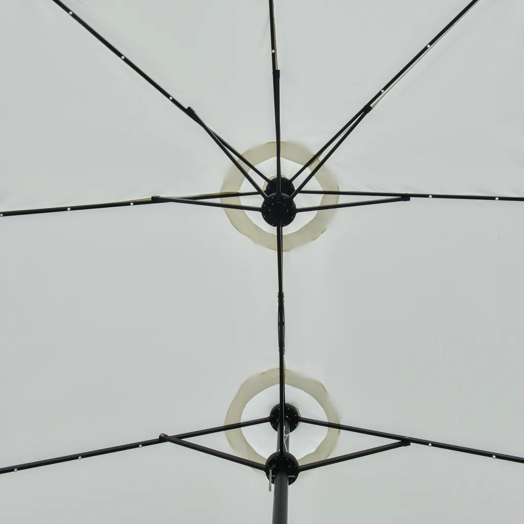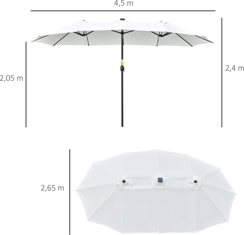 Outsunny Sonnenschirm Mit LED Solar 4,5m Doppelsonnenschirm Gartenschirm Marktschirm Terrassenschirm Oval Schwarz+Cremeweiß