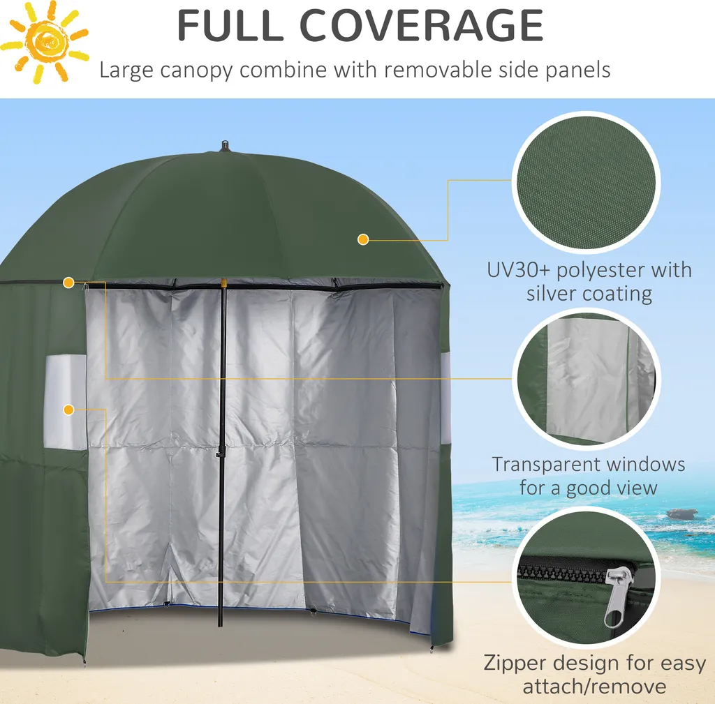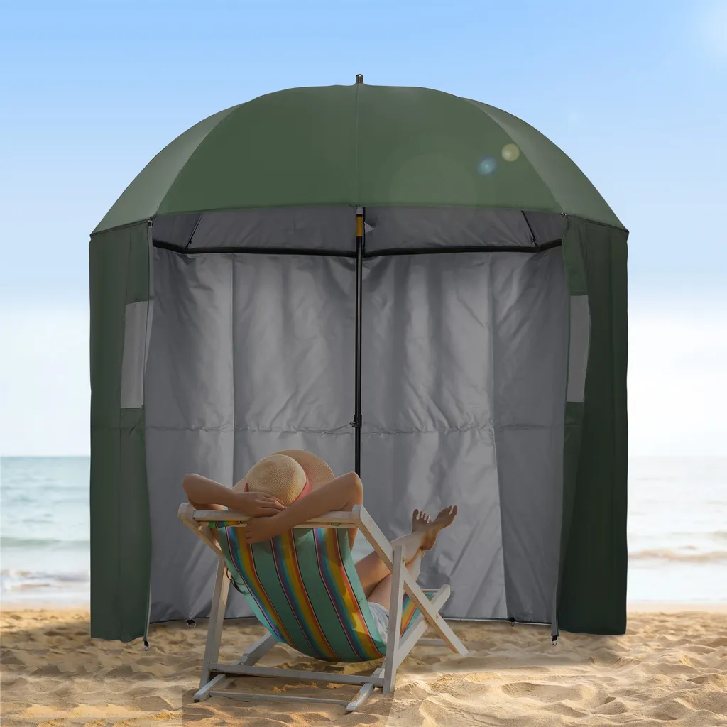 Outsunny Sonnenschirm Strand 2,2 M Angelschirm Mit Seitenwand Strandschirm Schirmzelt Angelzelt Sonnenschutz Polyester Grün