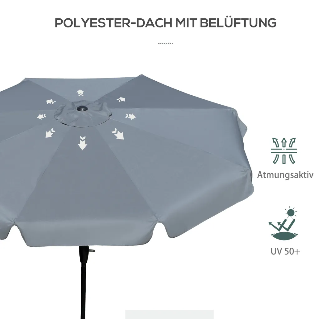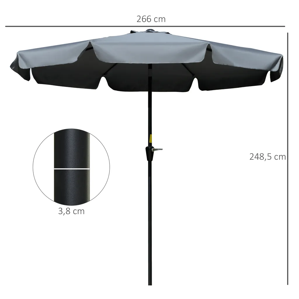 Outsunny Sonnenschirm Terrassenschirm Marktschirm Ø2,66 M UV-Schutz 50+ Gartenschirm 8 Rippen Verstellbar Dunkelgrau