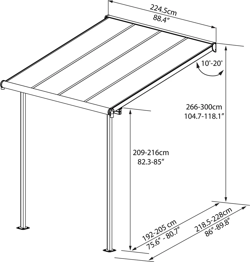 Palram-Canopia Aluminium Terrassenüberdachung Mit Doppelstegplatten „Sierra“ Anthrazit 230 X 230 Cm