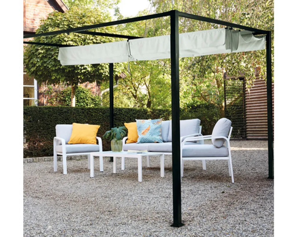 Pavillon Sky, 300x400cm, Gestell Aus Aluminium/Stahl, Pulverbschichtet In Anthrazit, Dach Aus Polyester 200g In Grau, Zerlegt Im Karton Verpackt