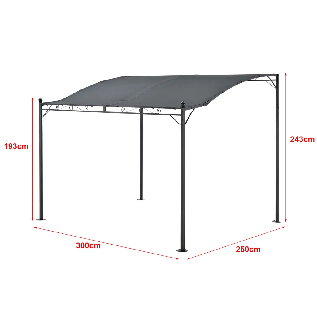 Pergola Teresina 300×250 Cm Gartenpavillon Überdachung Witterungsbeständig Gartenzelt Grillpavillon Sonnnenschutz Stahlgestell Dunkelgrau