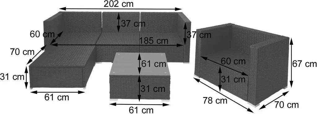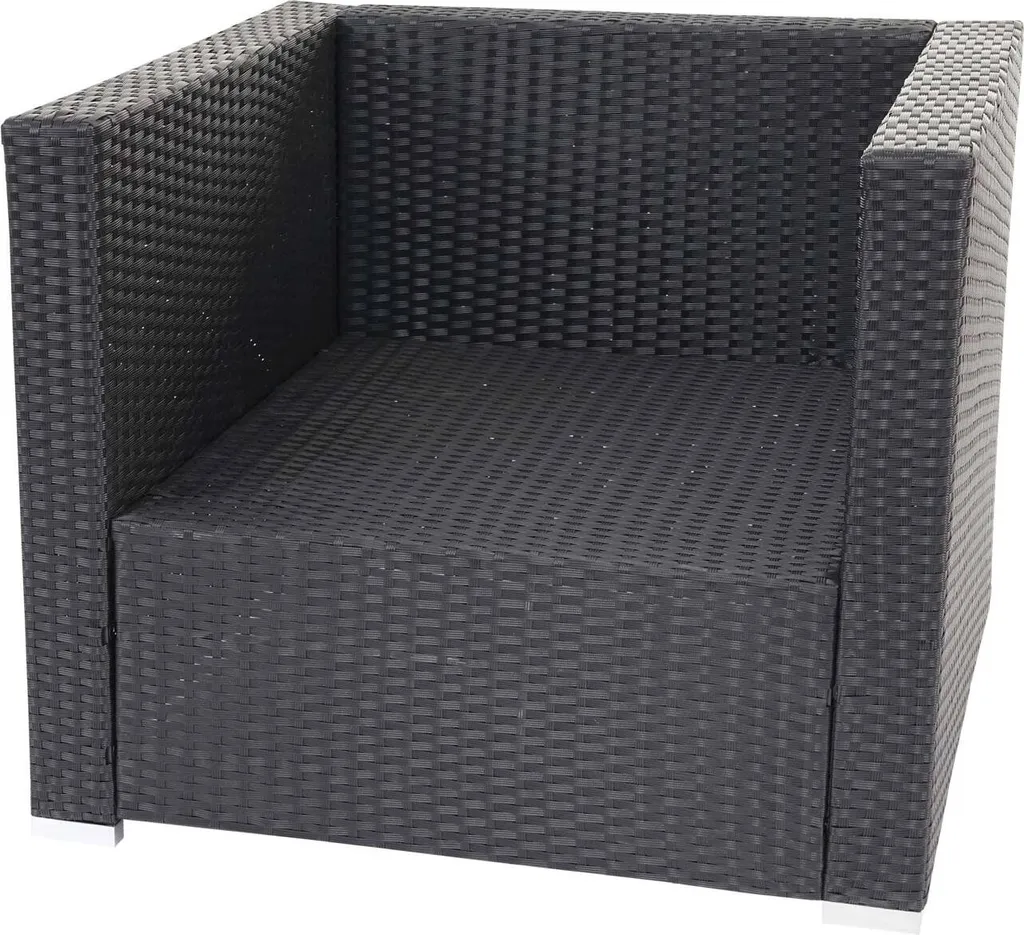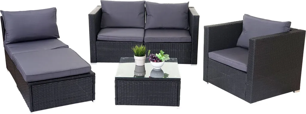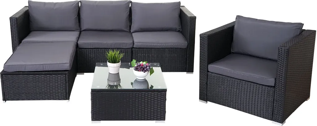 Poly-Rattan-Garnitur Brescia, Gartengarnitur Sitzgruppe Sofa Lounge-Set Schwarz, Kissen Anthrazit
