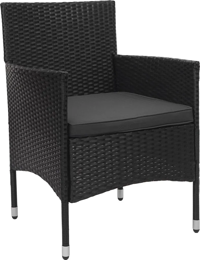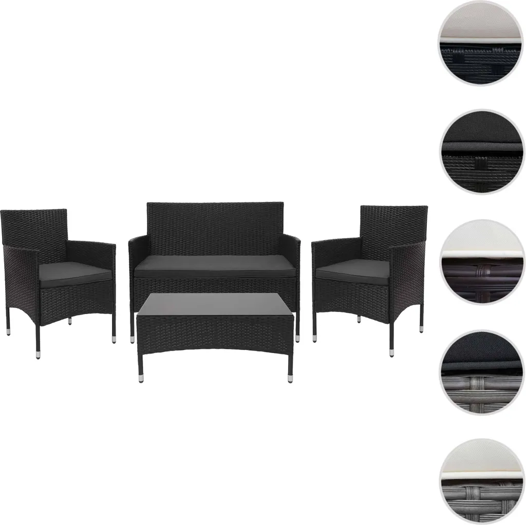 Poly-Rattan Garnitur HWC-F55, Balkon-/Garten-/Lounge-Set Sofa Sitzgruppe Schwarz, Kissen Dunkelgrau