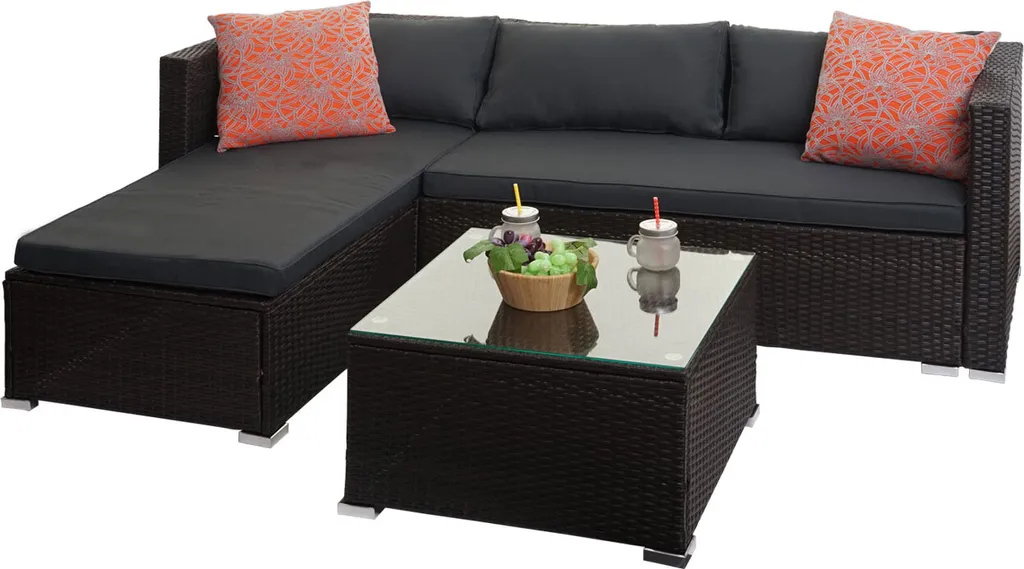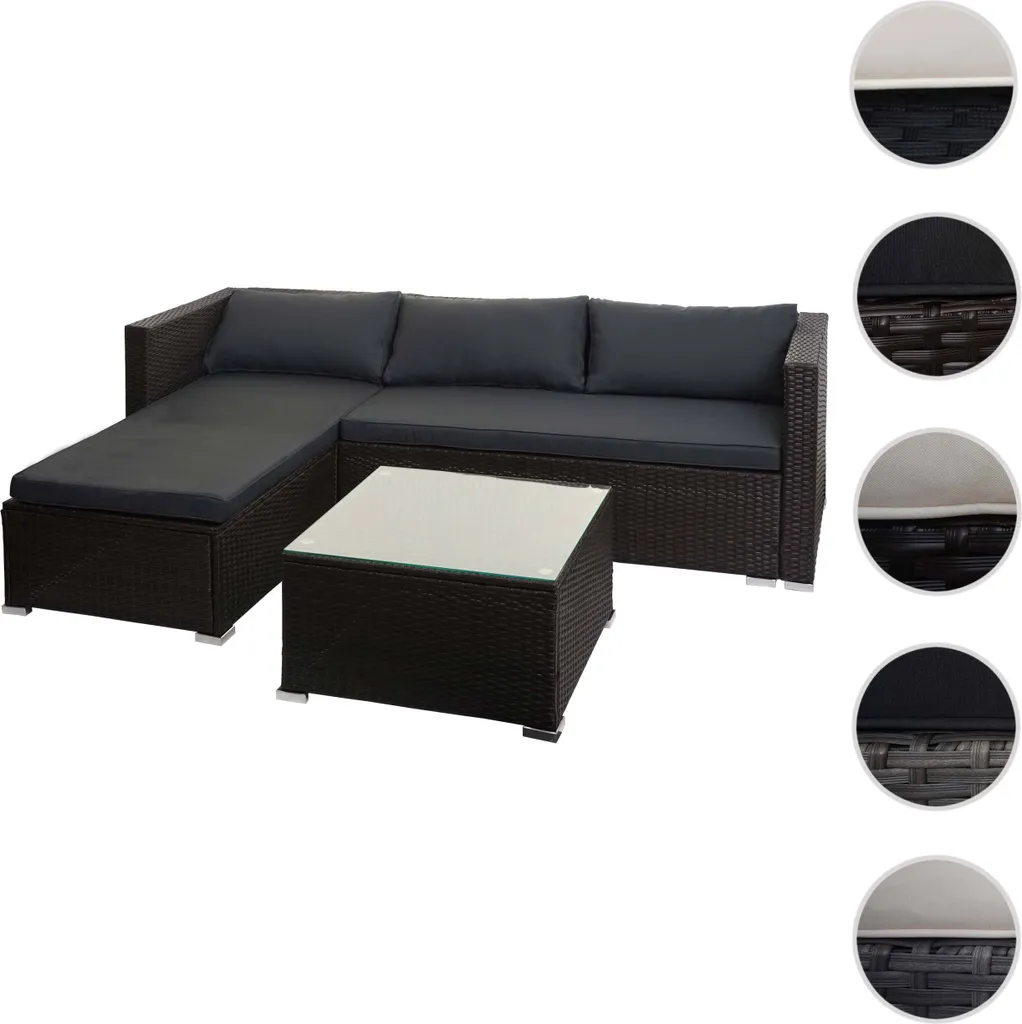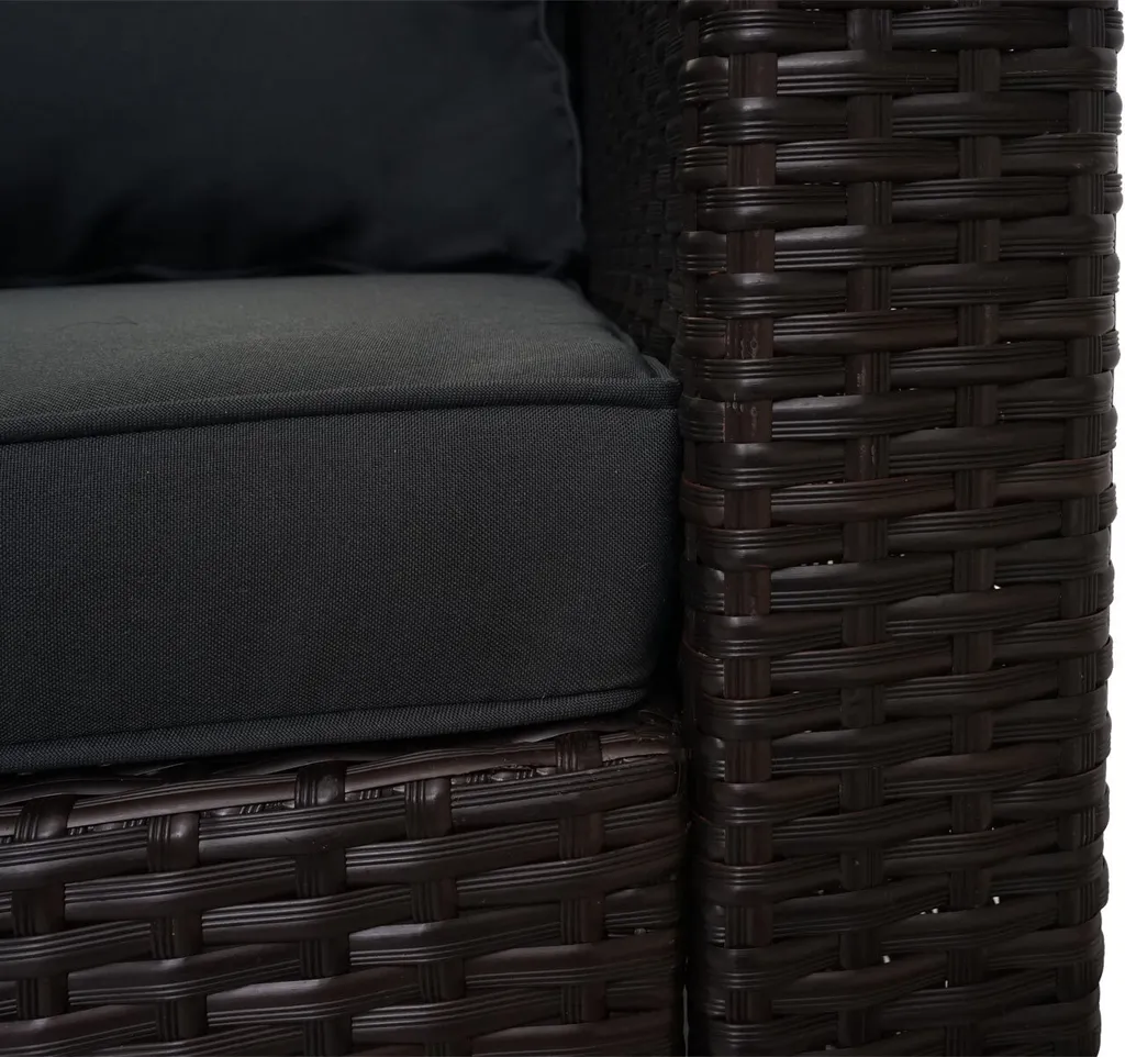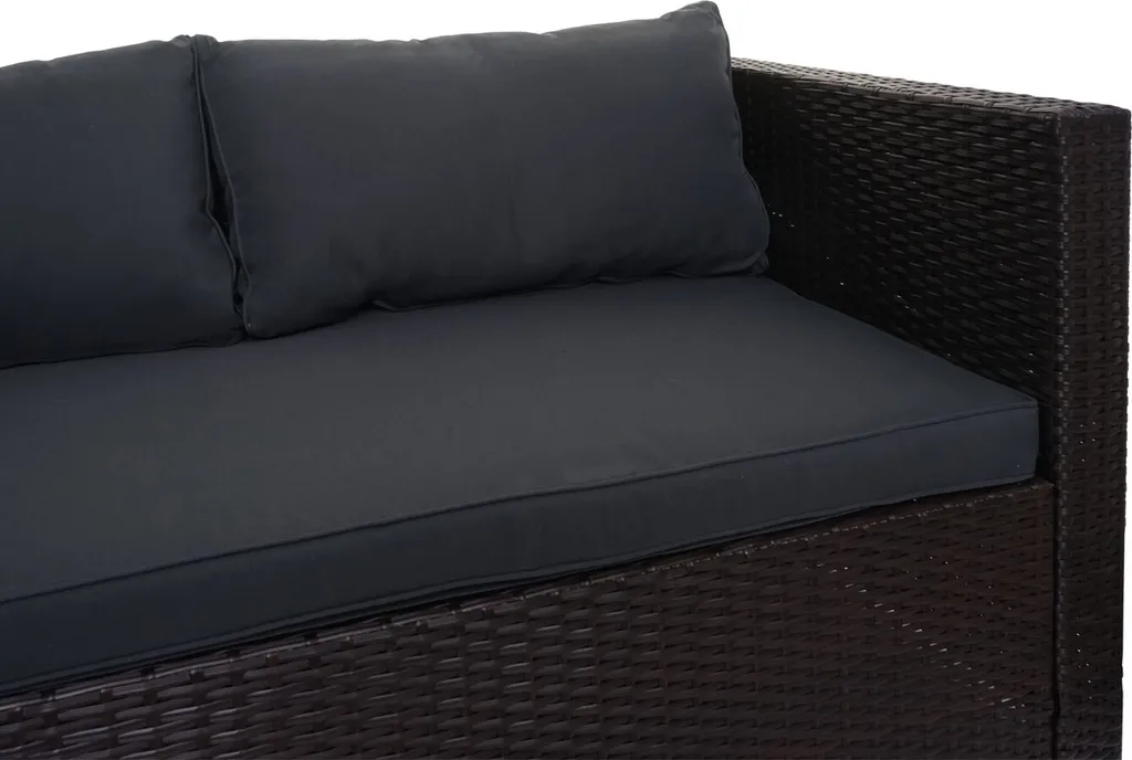 Poly-Rattan Garnitur HWC-F57, Balkon-/Garten-/Lounge-Set Sofa Sitzgruppe Braun, Kissen Dunkelgrau Ohne Deko-Kissen