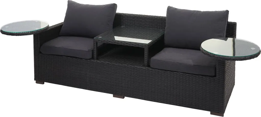 Poly-Rattan Garnitur HWC-J38, Garten-/Lounge-Set Sitzgruppe, Spun Poly Halbrundes Rattan Anthrazit, Kissen Dunkelgrau