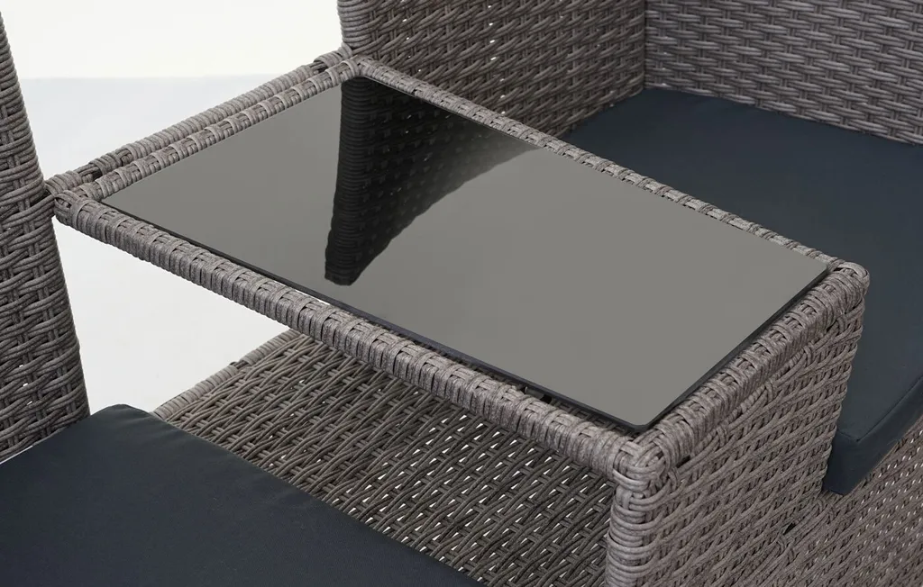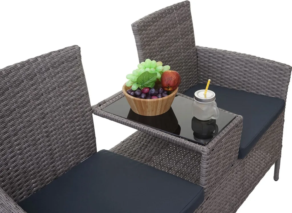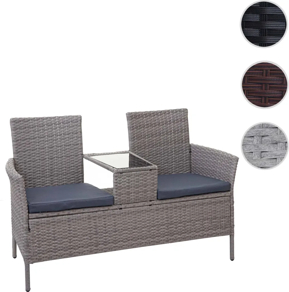 Poly-Rattan Sitzbank Mit Tisch MCW-E24, Gartenbank Sitzgruppe Gartensofa, 132cm Grau, Kissen Dunkelgrau