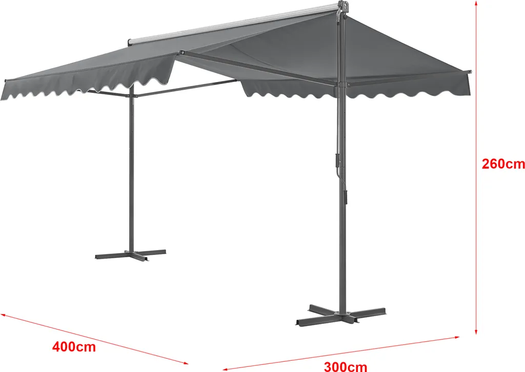 Pro-Tec Standmarkise Selenizza Freistehende Markise 400x300x260cm Gartenmarkise Sonnenschutz Terrassenüberdachung Outdoor Terrasse Garten Balkon Dunkelgrau
