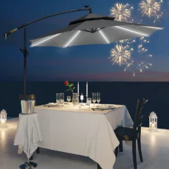 HOMCOM Outsunny Ampelschirm Ø295 Cm LED Solar Sonnenschirm Wasserabweisend Alu Hellgrau