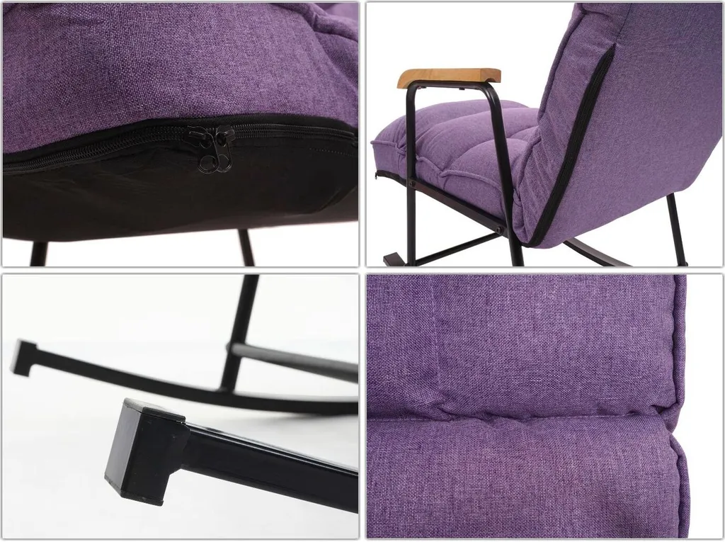 Schaukelstuhl HWC-K40, Schaukelsessel Schwingstuhl Relaxsessel, Liegefunktion Metall Stoff/Textil Lila-flieder