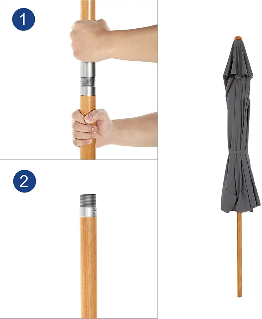SONGMICS 200 × 125 Cm Holz-Sonnenschirm, Marktschirm, UV-Schutz UPF 50+, Gartenschirm, Terrassenschirm, Sonnenschutz, Ohne Ständer Grau GPU26GY