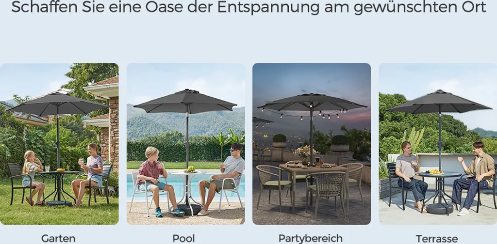 Schreibe die erste Rezension für „SONGMICS Sonnenschirm 210 Cm, UPF 50+, Beidseitig Um 30° Knickbar, Sonnenschutz, Mit Kurbel Zum Öffnen/Schließen, Grau GPU202G01“ Antwort abbrechen