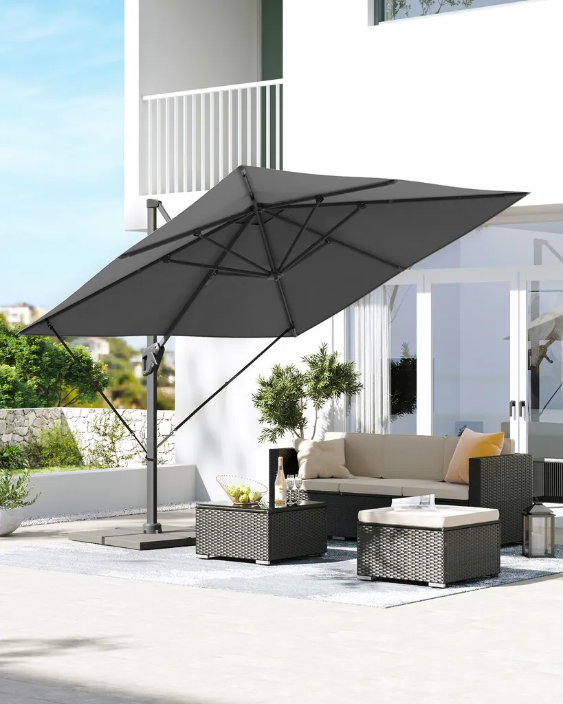 SONGMICS Sonnenschirm 290 X 290 Cm, UV-Schutz UPF 50+, Um 360° Drehbar, Mit Ständer, Befestigungsgurten Und Abdeckung, Rauchgrau GPU039G01