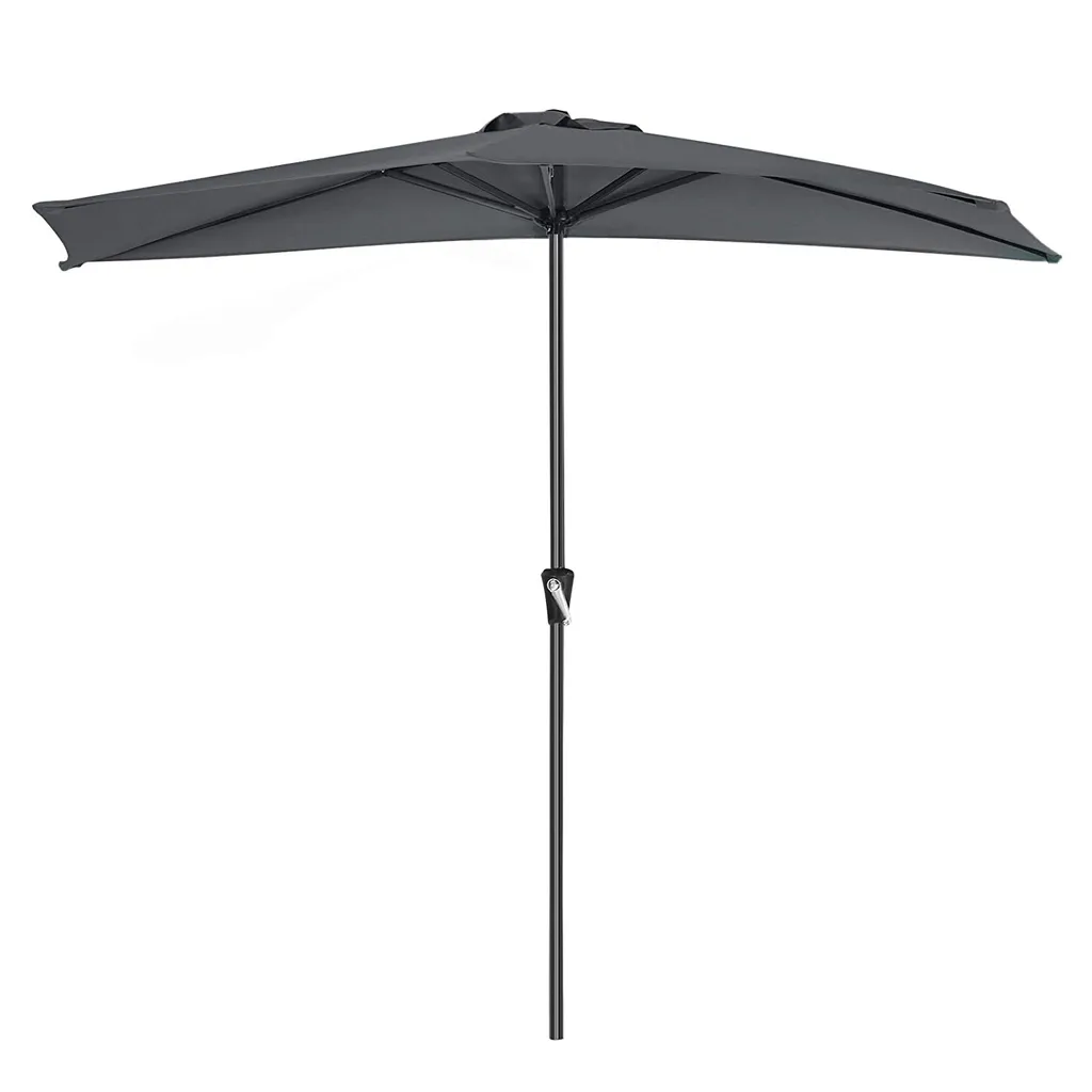 SONGMICS Sonnenschirm Ø 270cm Halbrund Sonnenschutz Bis UPF 50+ Balkonschirm Mit Kurbel Terrassenschirm Ohne Ständer Grau GPU31GY
