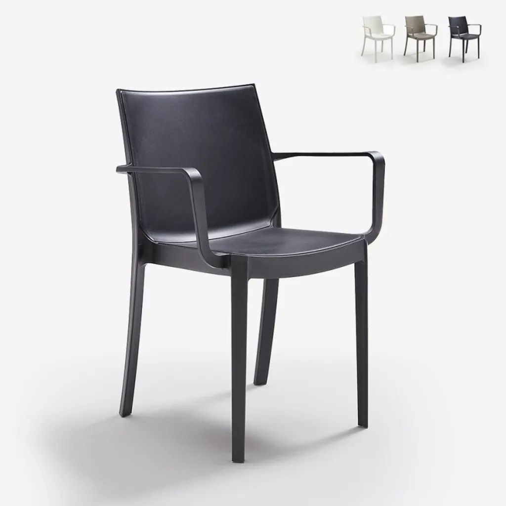 Stapelbarer Bar-Gartenstuhl Mit Armlehnen Victoria BICAFarbe: Schwarz, Höhe (cm): 82, Breite (cm): 58, Tiefe (cm): 55, Zusammensetzung: POLYPROPYLENE, Modelle: VICTORIA, Länge (cm): 55