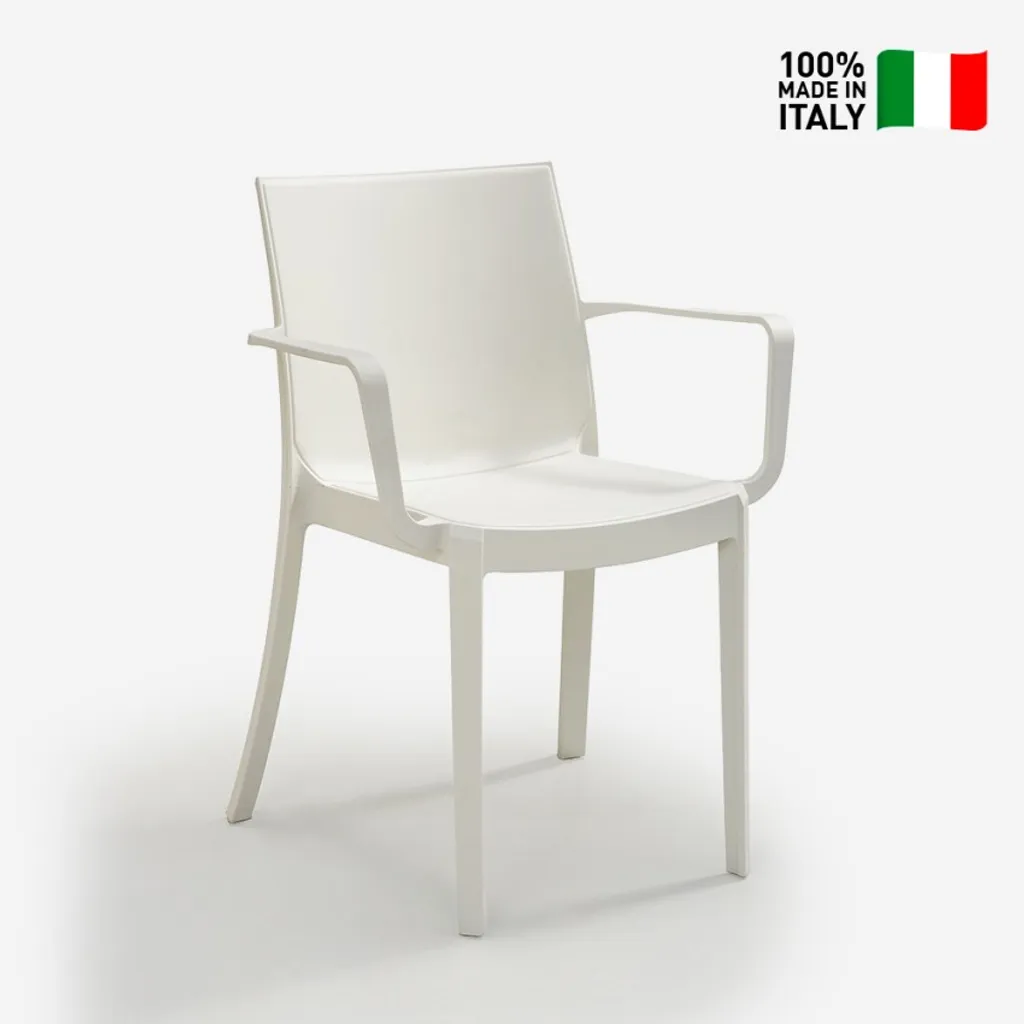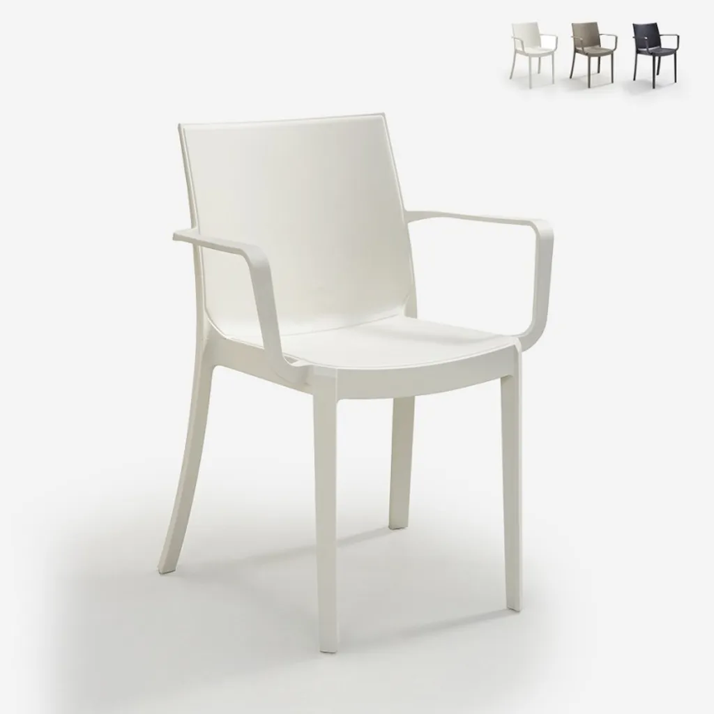 Stapelbarer Bar-Gartenstuhl Mit Armlehnen Victoria BICAFarbe: Weiß, Höhe (cm): 82, Breite (cm): 58, Tiefe (cm): 55, Zusammensetzung: POLYPROPYLENE, Modelle: VICTORIA, Länge (cm): 55