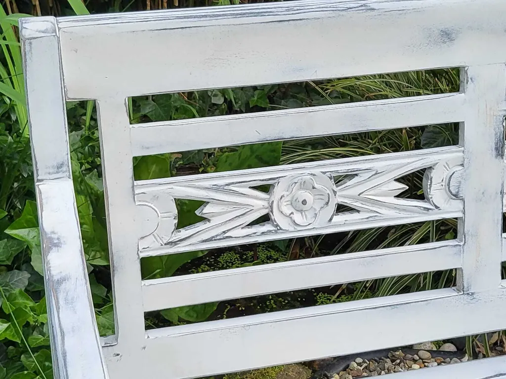 Teakbank-Landhaus-Bank-Parkbank-Gartenbank-Blumen-Bank-Balkon-Bank 2 Sitzer Shabby Chic White Washed Antik Weiss