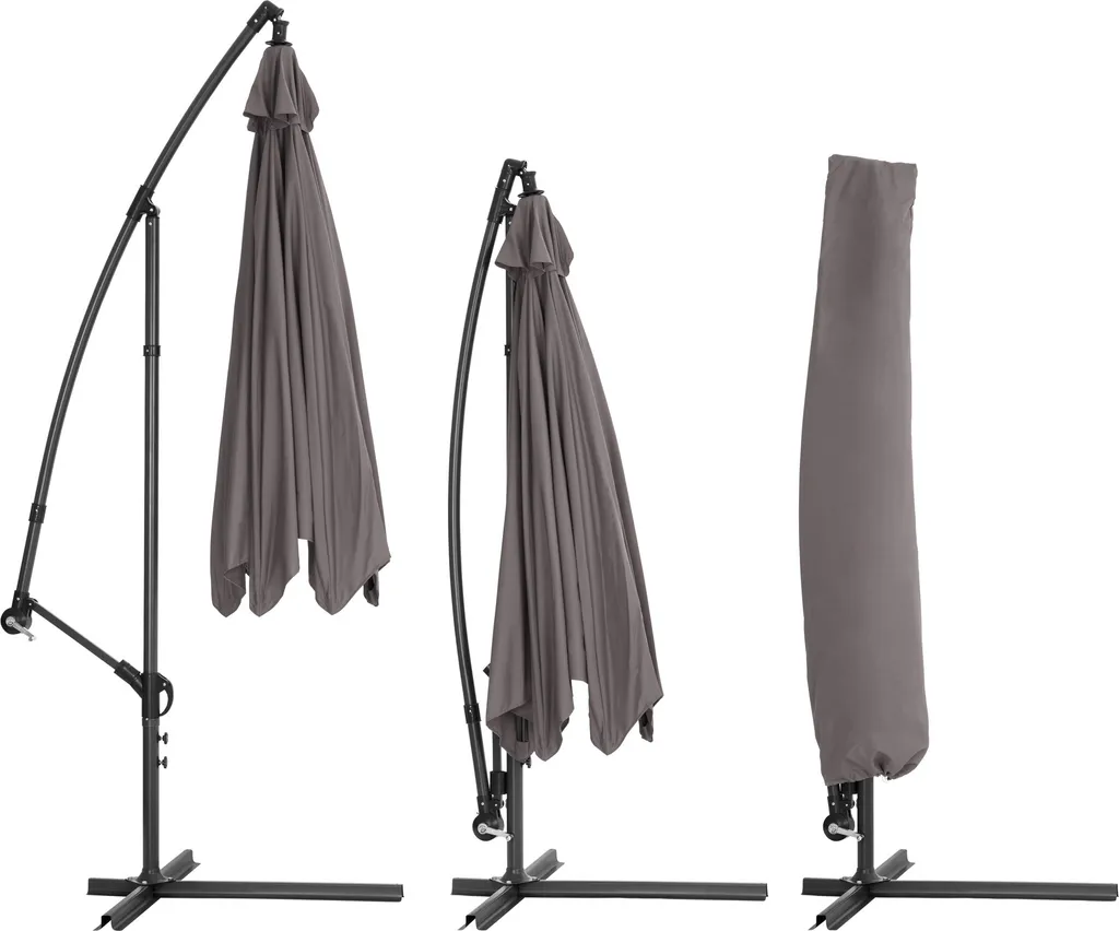 Tectake Sonnenschirm Ampelschirm Ciccio Ø 350cm Mit Schutzhülle – Grau