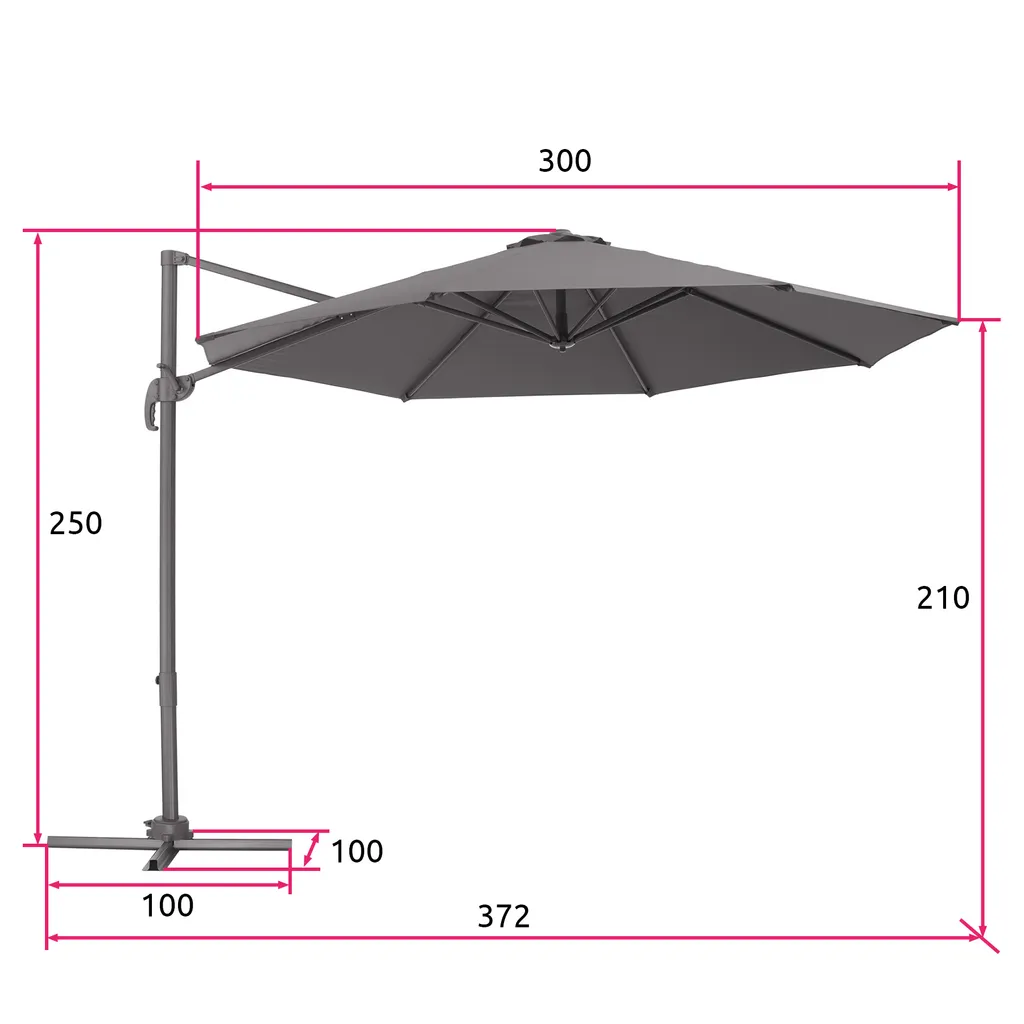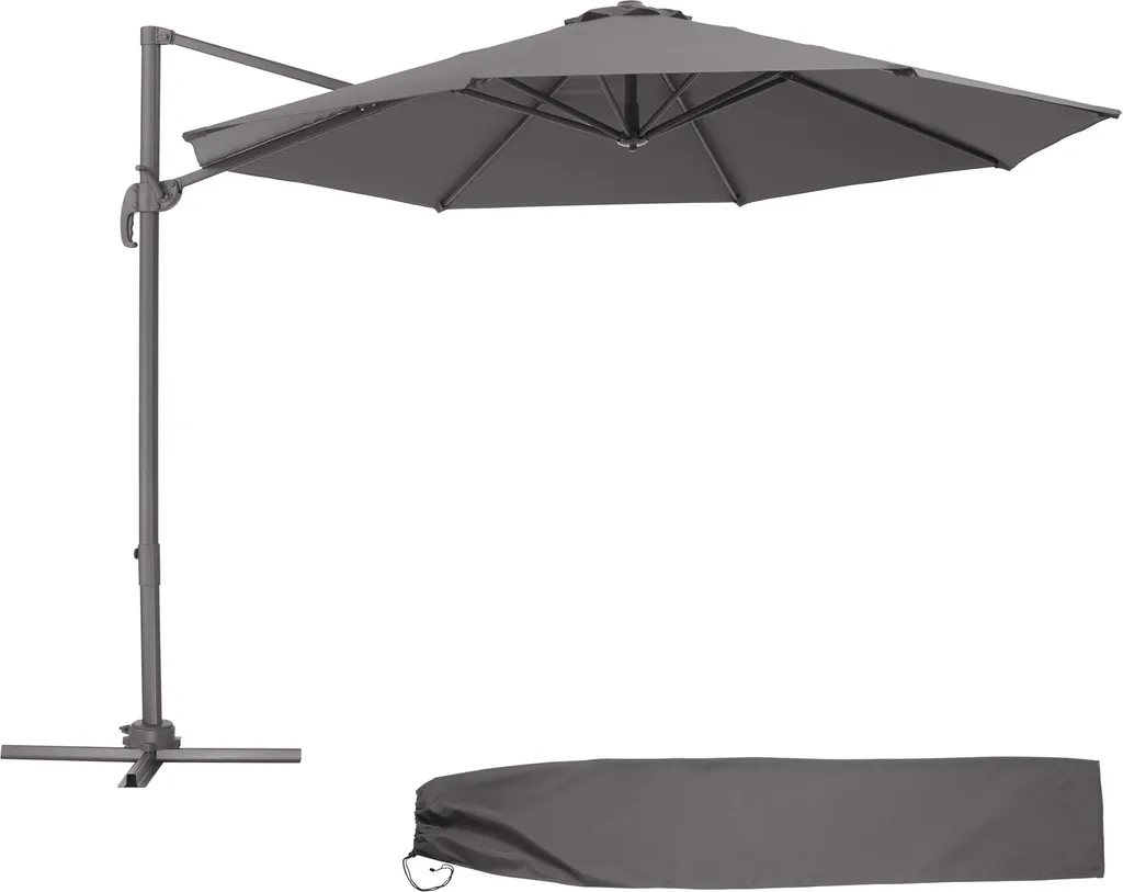 Tectake Sonnenschirm Ampelschirm Ø 300cm Mit Fußpedal Und Schutzhülle – Grau